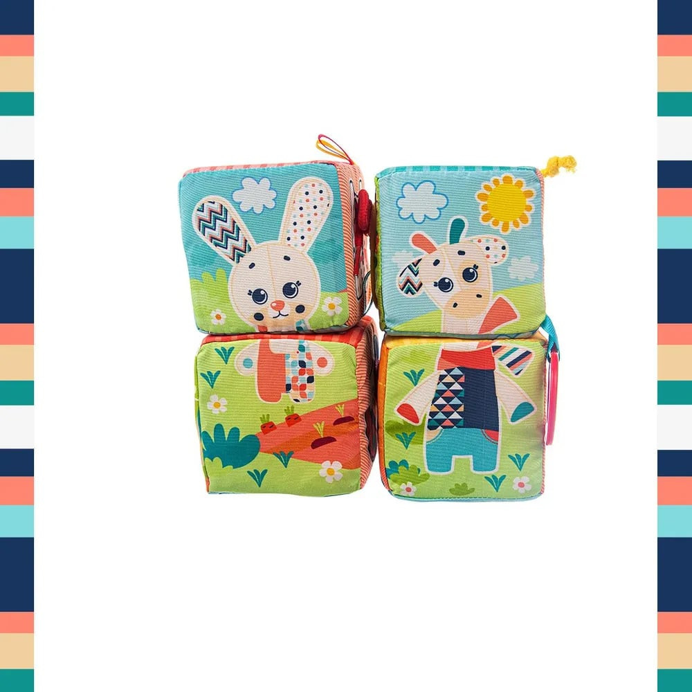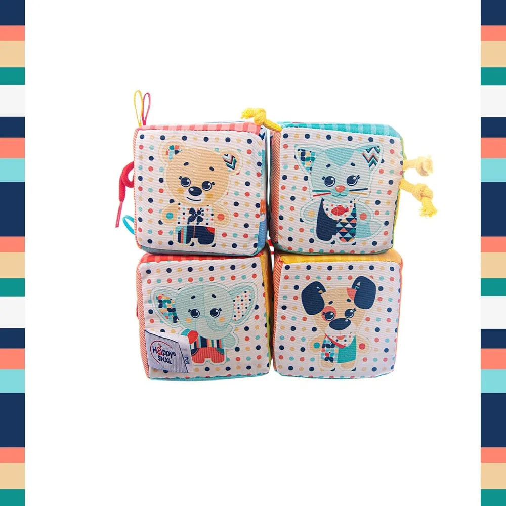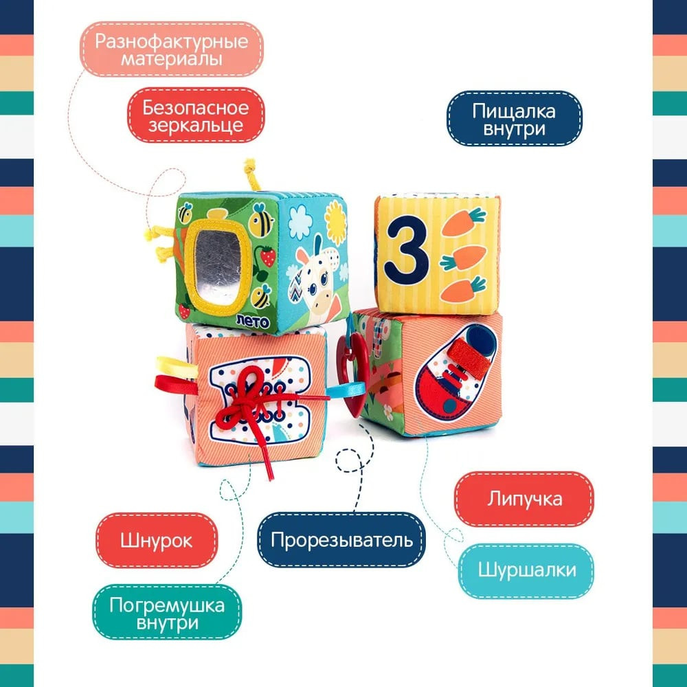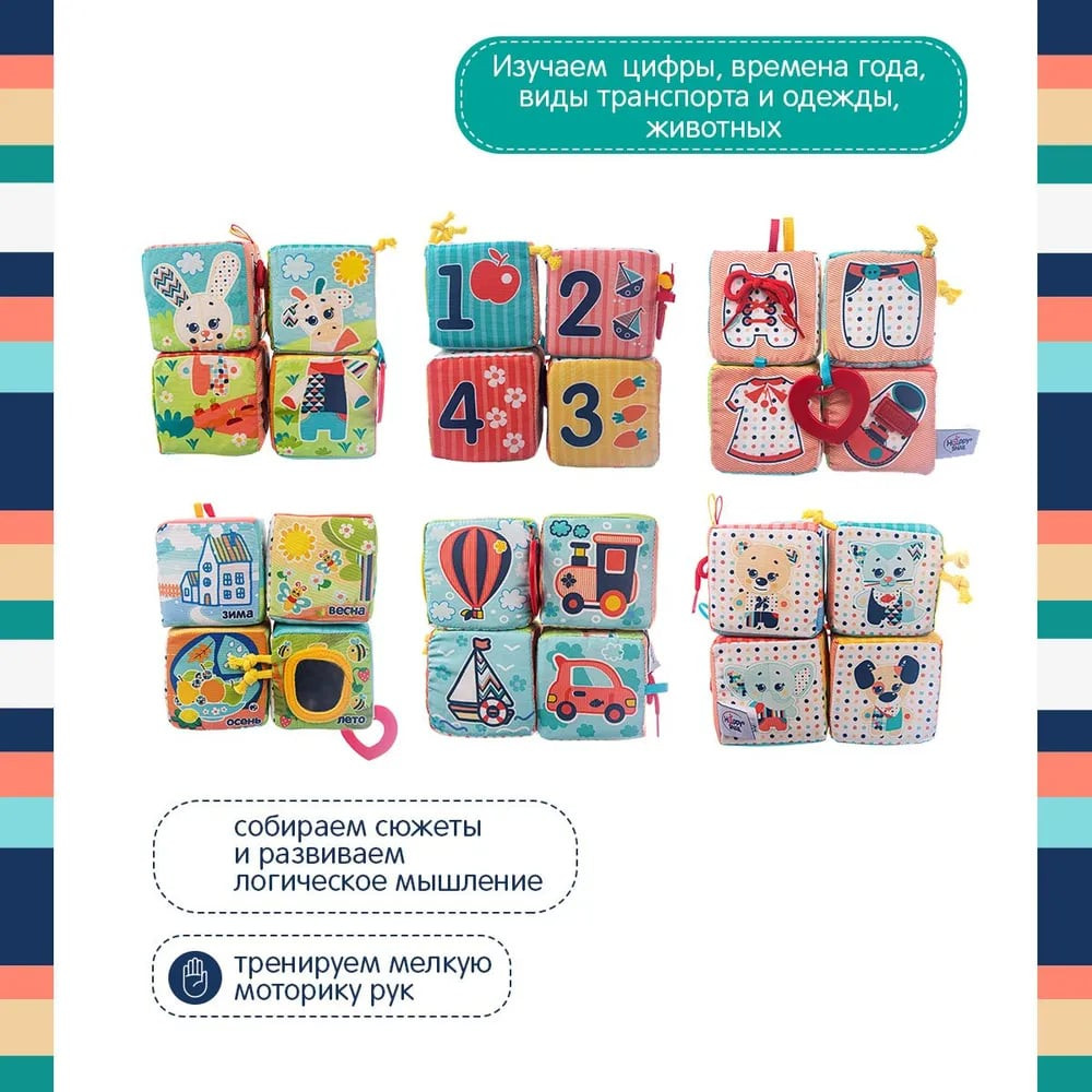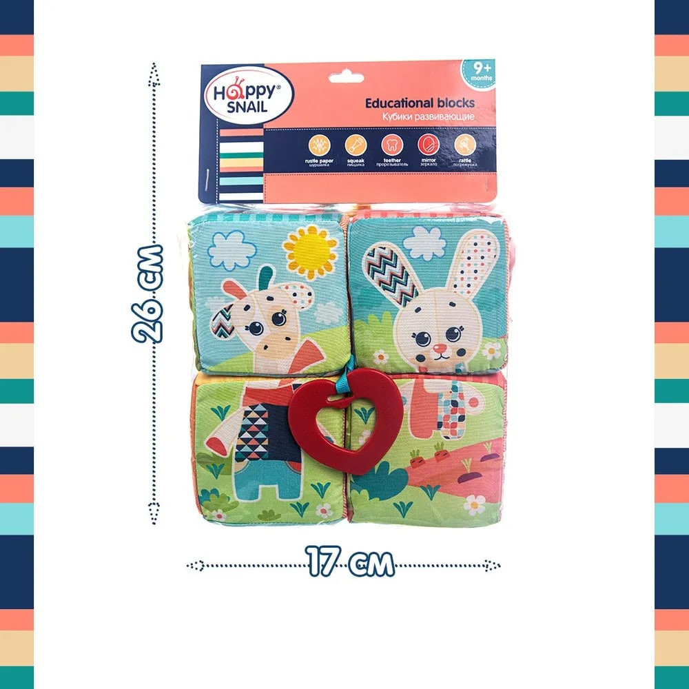 Happy Snail Кубики развивающиеВ данный момент этот товар отсутствует в продаже. Возможно, у нас найдется аналогичный или похожий товар здесь. Набор из четырех функциональных кубиков 8×8 см имеет прорезыватель, зеркало, шнурок для завязывания бантика, шуршалку, пищалку, липучку, погремушку. А также ленточки и веревочки, вшитые в ребра кубика, за которые малыш сможет дергать, развивая мелкую моторику. Играя с кубиками, ребенок научится складывать картинку из частей, подбирая нужное изображение по цвету фона или по фрагментам рисунка. |