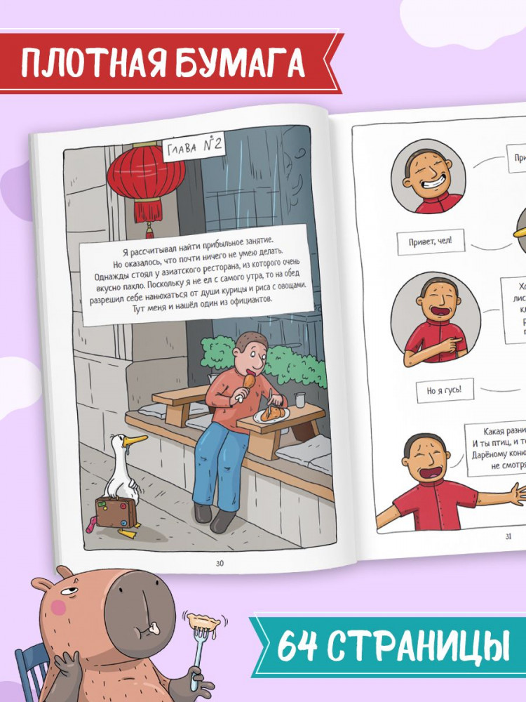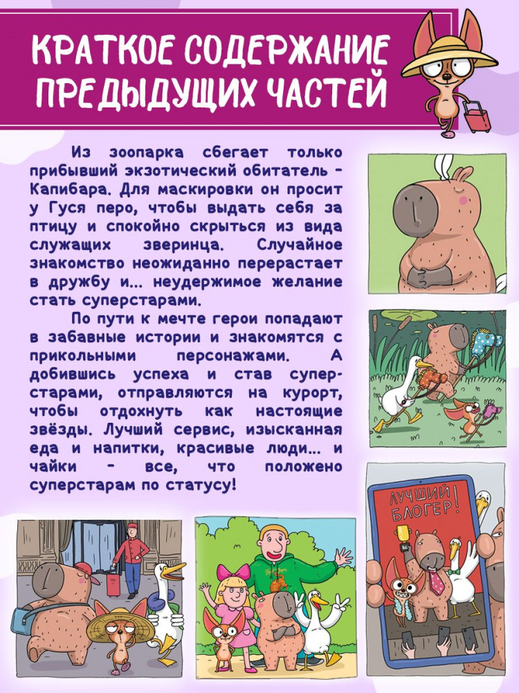 💳 Оплатить за товар можно при получении 🇰🇿 Есть бесплатная доставка по Казахстану от 1 дня 🎁 Копите бонусы с каждой покупки Серия: Капибара и Гусь Комикс «Капибара и Гусь» расскажут вам о том, что было до популярности Гусика в интернете. 5 том «Тренд Хауса» начинает свой путь с мамы Гуся, гусыни по имени Богиня, которая когда-то сверкала на манеже цирка шапито как настоящая звезда. Её завораживающее выступление привлекало множество зрителей, и именно поэтому на Негугусика легли огромные надежды всех цирковых работников. Они считали его избранным, способным продолжить великое дело Богини. Теперь жизнь Гуся полна неожиданных событий и удивительных поворотов судьбы. Каждый день приносит что-то новое и захватывающее. Скорее открывайте 5 том комикса, чтобы узнать о невероятных буднях Гусика! |
