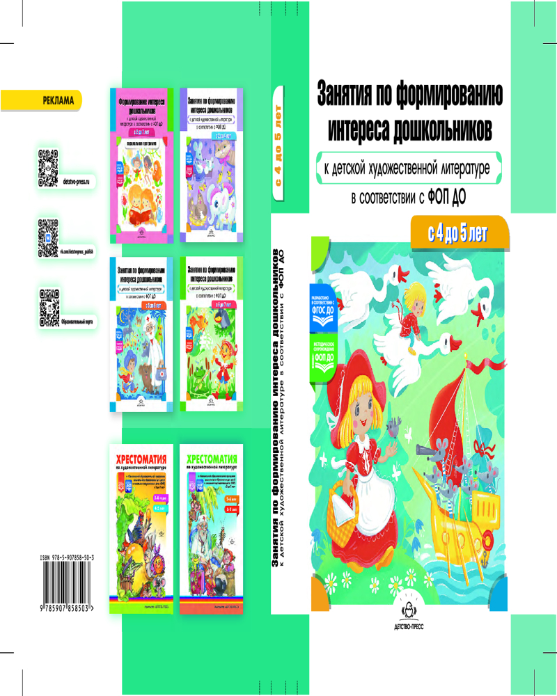 💳 Оплатить за товар можно при получении 🇰🇿 Есть бесплатная доставка по Казахстану от 1 дня 🎁 Копите бонусы с каждой покупки В пособии представлены сценарии образовательных ситуаций по приобщению детей 4–5 лет к книге. Содержание сценариев отражает субъективный опыт детей пятого года жизни, их познавательные интересы, особенности восприятия текстов художественной литературы. В соответствии с ФГОС ДО одной из ведущих задач является формирование понимания на слух текстов различных жанров детской литературы. Под пониманием на слух подразумевается восприятие этих текстов. Ребенок по-своему воспринимает художественные образы, обогащает их собственным воображением, соотносит со своим личным опытом. Поэтому круг чтения для детей 4–5 лет включает в себя и знакомство с малыми формами фольклора, слушание и чтение народных и авторских сказок, произведений писателей и поэтов. Методическое пособие адресовано воспитателям, руководителям, педагогическим коллективам ДОО. |