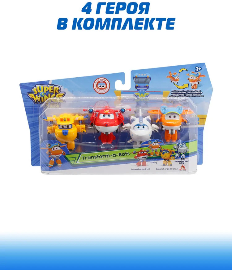 💳 Оплатить за товар можно при получении 🇰🇿 Есть бесплатная доставка по Казахстану от 1 дня 🎁 Копите бонусы с каждой покупки Набор из 4х мини-трансформеров. Герои, входящие в набор полностью повторяют образы героев мультфильма Супер Крылья. Каждый их них может трансформироваться из самолёта в робота за 3 простых шага. В набор входят герои Джетт, Донни, Астра и Санни. |