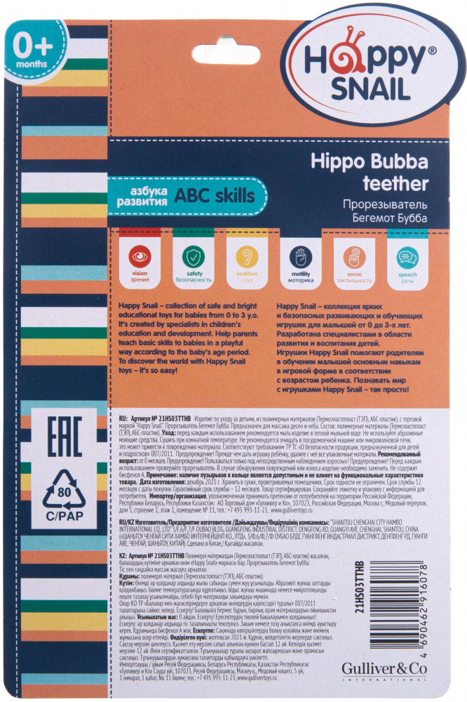Happy Snail Прорезыватель «Бегемот Бубба»+50