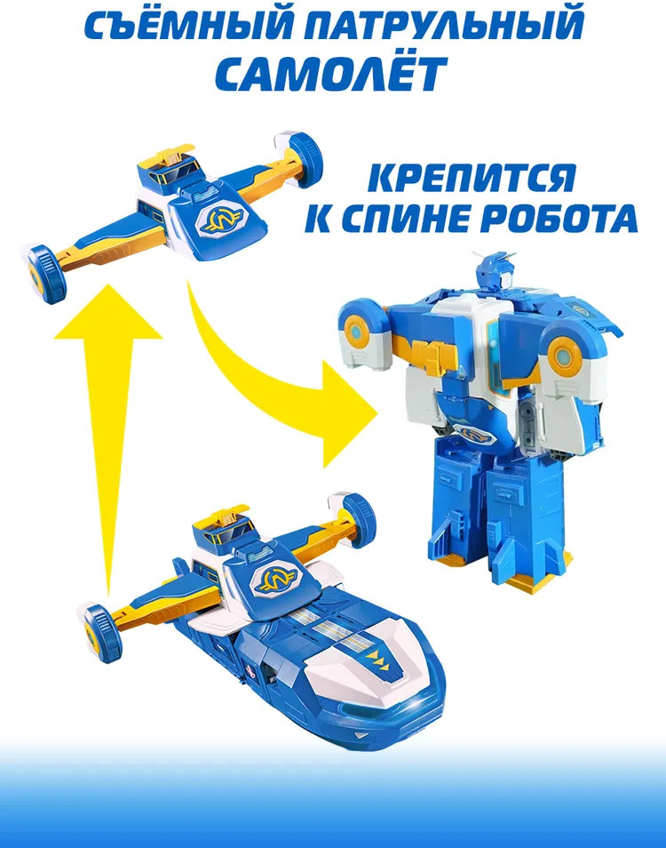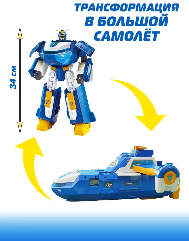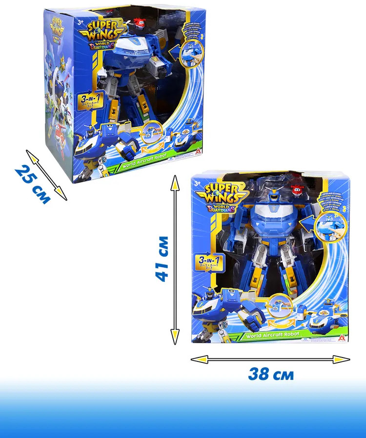 💳 Оплатить за товар можно при получении 🇰🇿 Есть бесплатная доставка по Казахстану от 1 дня 🎁 Копите бонусы с каждой покупки Супер мега большой робот трансформер от команды Супер Крылья. Интересная многоступенчатая обратная трансформация из робота в самолёт со взлётно-посадочной полосой, откуда можно запустить фигурку мини Джетта. Может обратно трансформироваться из большого самолёта в ОГРОМНОГО РОБОТА высотой 34 см. Съёмные крылья самолёта прикрепляются к спине робота. Свет и звук включается путём нажатия на кнопку на груди робота. В комплект входит 1 мини фигурка Джетта. Ноги робота открываются и могут быть использованы для хранения мини фигурки-самолётика. Мини машинка может спускается по ноге, а также храниться в диспетчерской. |
