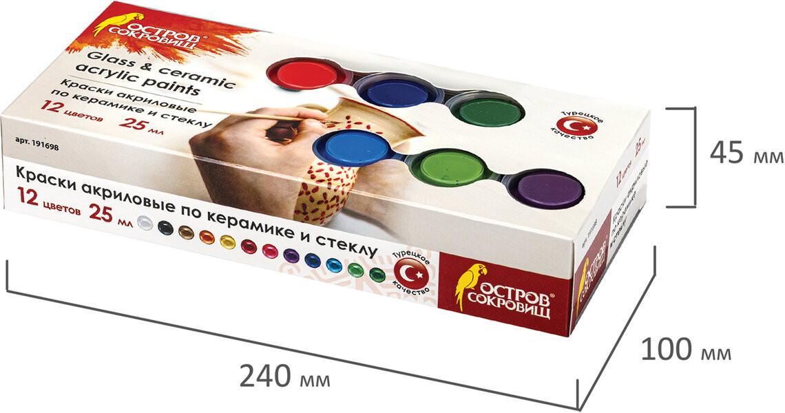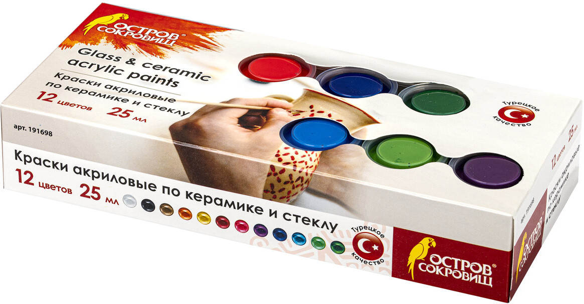 Остров сокровищ Краски акриловыеВ данный момент этот товар отсутствует в продаже. Возможно, у нас найдется аналогичный или похожий товар здесь. Краски акриловые отлично подойдут для создания уникальных рисунков на керамике и стекле. В наборе 12 ярких и насыщенных цветов: белый, красный, синий, черный, желтый, зеленый, оранжевый, салатовый, розовый, фиолетовый, голубой, бежевый. |