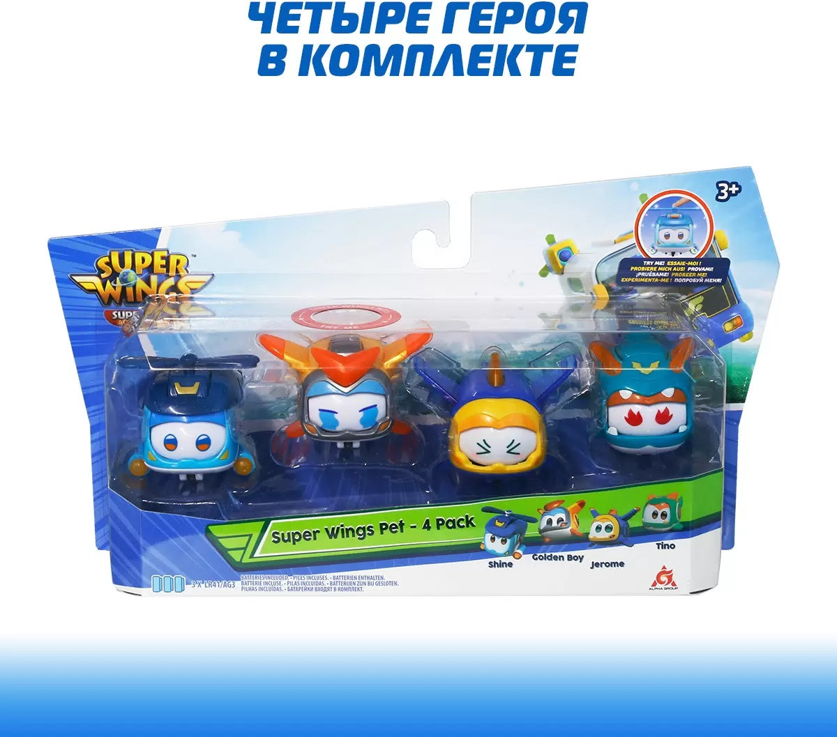 Super Wings Набор мини-трансформеров «Питомцы Шайн, Голден бой, Джеров, Тино»+550