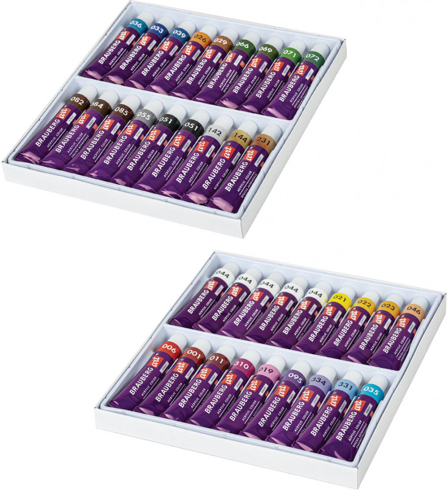 В данный момент этот товар отсутствует в продаже. Возможно, у нас найдется аналогичный или похожий товар здесь. Серия: Art debut Художественные акриловые краски Brauberg Art «Debut» предназначены для живописи и декоративных работ. Краски с матовым финишем. Легко наносятся практически на любую поверхность. Быстро высыхают без изменения цвета. Обладают отличной укрывистостью и светостойкостью. Разбавляются водой. Не токсичны и не имеют неприятного резкого запаха. Краски в тубах объемом 12 мл поставляются в картонной коробке.