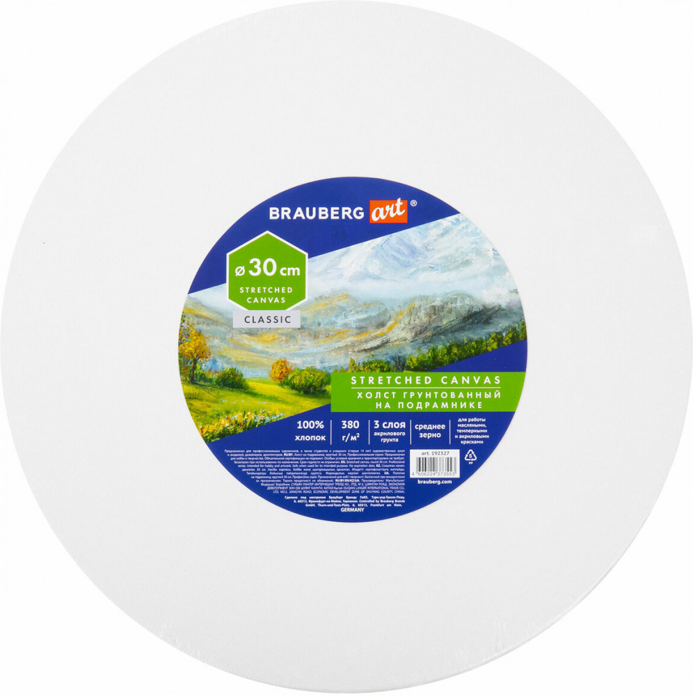 В данный момент этот товар отсутствует в продаже. Возможно, у нас найдется аналогичный или похожий товар здесь. Холст на подрамнике используется для работы масляными, темперными и акриловыми красками. Предназначен для учеников и студентов художественных школ, художников. Изготовлен из 100% хлопка плотностью 380 г/м2, покрытого акриловым грунтом. Хлопковое полотно характеризуется ровной поверхностью со слабовыраженным рельефом. Односторонний трехслойный акриловый грунт позволяет сохранить цвета неизменными, не допуская их прожухания. Холст круглой формы на подрамнике полностью готов к работе. Диаметр — 30 см. Подрамник — 15×30 мм.
