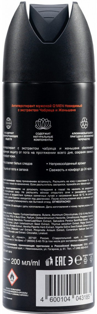 Q'men Дезодорант-антиперспирант для мужчин «Invisible»
