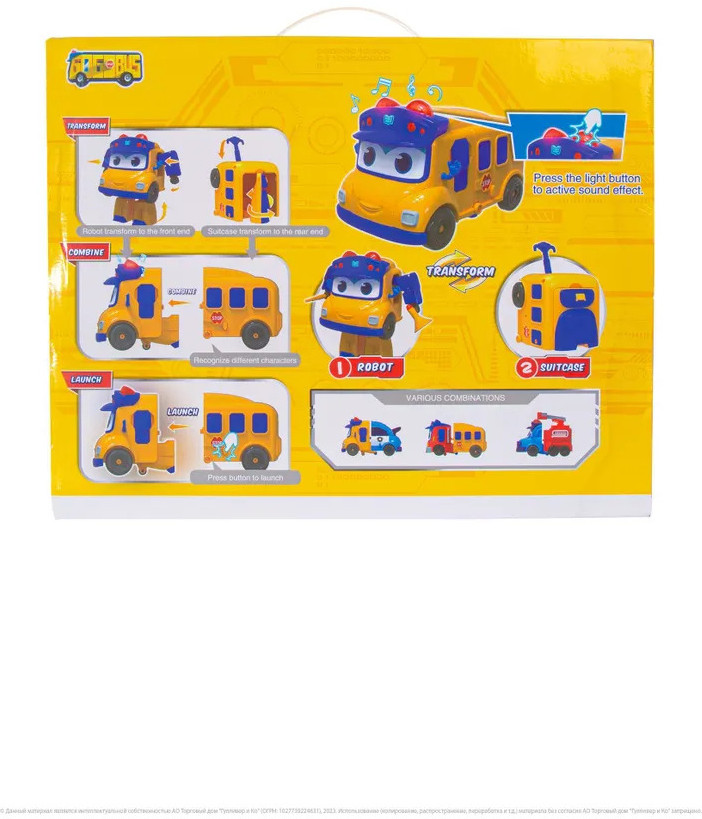 💳 Оплатить за товар можно при получении 🇰🇿 Есть бесплатная доставка по Казахстану от 1 дня 🎁 Копите бонусы с каждой покупки Автобус Гордон — главный герой одноименного мультсериала. Игрушка автобус всегда спешит на помощь малышам, превращаясь в различные транспортные средства. Трансформер автобус Гордон легко трансформируется в робота. Трансформация происходит за несколько простых движений. Ребенок может играть двумя игрушками попеременно, ведь это игрушка 2 в 1 — машинка и робот. У трансформера имеются световые и звуковые эффекты, что добавляет игре с роботами релистичность и интерес. Превращаясь из автомобиля в робота, получается дополнительный аксессуар. Корпус машины изготовлен из крепкого качественного пластика. Игрушки роботы трансформеры — отличный подарок для мальчика и для девочки 3 года и старше. |