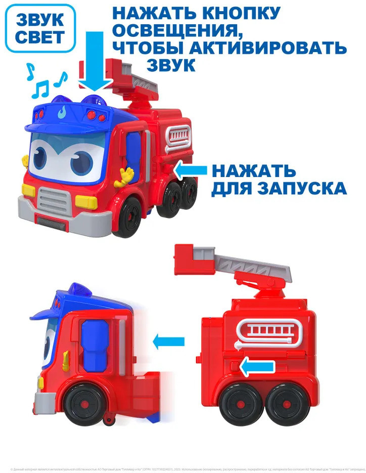 💳 Оплатить за товар можно при получении 🇰🇿 Есть бесплатная доставка по Казахстану от 1 дня 🎁 Копите бонусы с каждой покупки Трансформер пожарная машина — герой популярного мультсериала Автобус Гордон. По сюжету главный герой сериала, Автобус Гордон, всегда спешит на помощь малышам, превращаясь в различные транспортные средства, в том числе пожарную машину. Трансформер пожарная машина легко трансформируется в робота. Трансформация происходит за несколько простых движений. Ребенок может играть двумя игрушками попеременно, ведь это игрушка 2 в 1 — машинка и робот. У трансформера имеются световые и звуковые эффекты, что добавляет игре с роботами релистичность и интерес. Превращаясь из автомобиля в робота, получается дополнительный аксессуар. С помощью такой игрушки можно обучать ребенка технике безопасности при пожаре. Корпус машины изготовлен из крепкого качественного пластика. Игрушки роботы трансформеры — отличный подарок для мальчика и для девочки 3 года и старше |