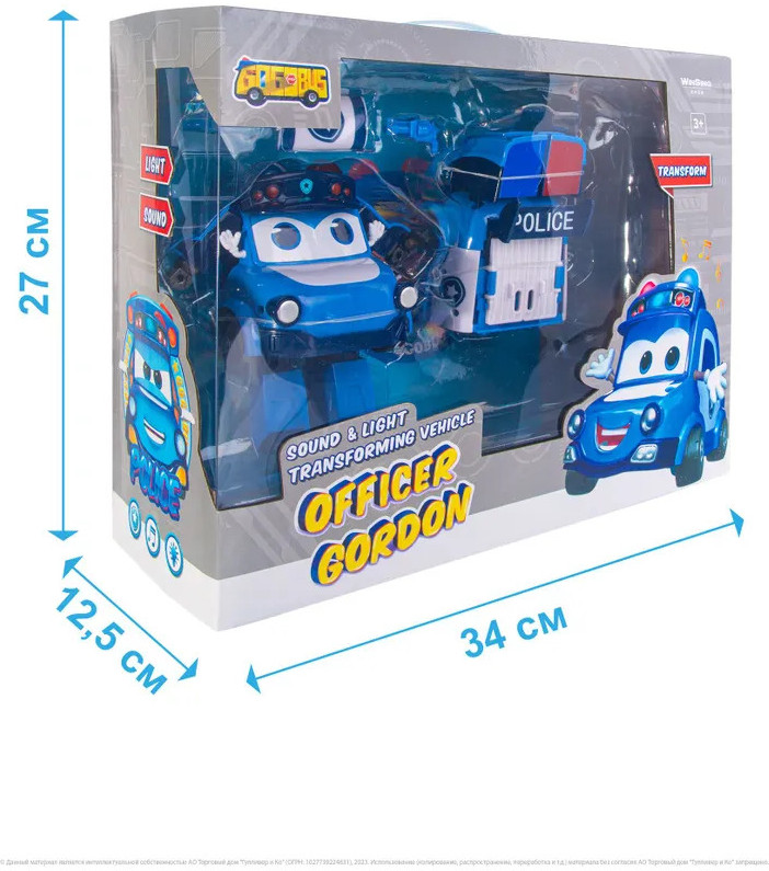 💳 Оплатить за товар можно при получении 🇰🇿 Есть бесплатная доставка по Казахстану от 1 дня 🎁 Копите бонусы с каждой покупки Трансформер Полицейская машина — герой популярного мультсериала Автобус Гордон. По сюжету главный герой сериала, Автобус Гордон, всегда спешит на помощь малышам, превращаясь в различные транспортные средства, в том числе полицейскую машину. Трансформер полицейская машина легко трансформируется в робота. Трансформация происходит за несколько простых движений. Ребенок может играть двумя игрушками попеременно, ведь это игрушка 2 в 1 — машинка и робот. У трансформера имеются световые и звуковые эффекты, что добавляет игре с роботами релистичность и интерес. Превращаясь из автомобиля в робота, получается дополнительный аксессуар. Корпус машины изготовлен из крепкого качественного пластика. Игрушки роботы трансформеры — отличный подарок для мальчика и для девочки 3 года и старше. |