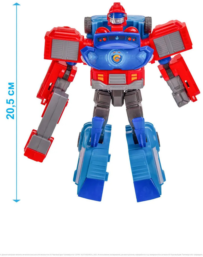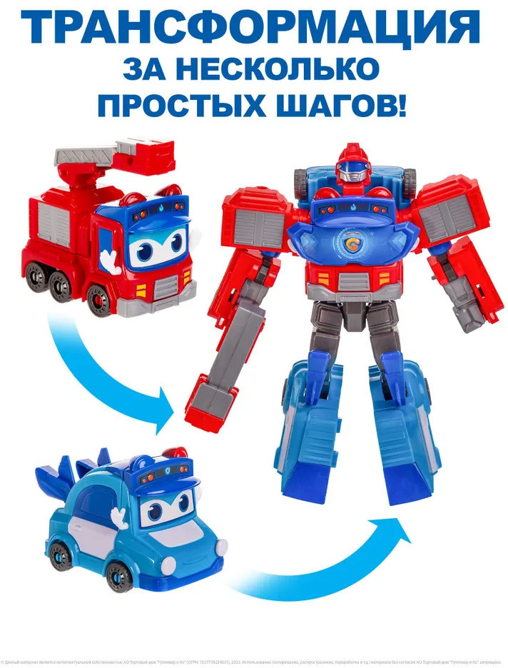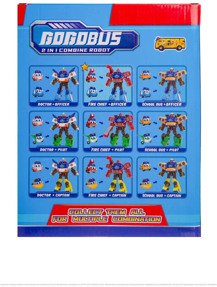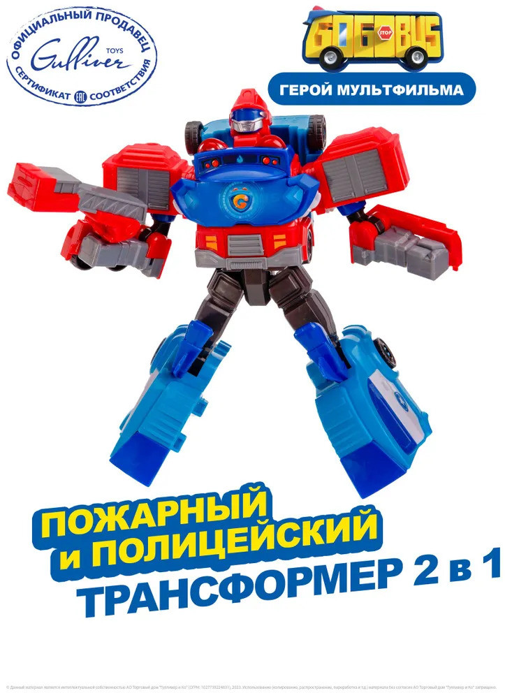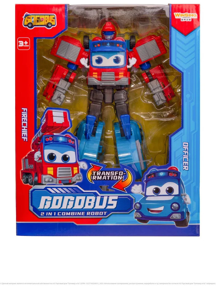 GoGo Bus Робот-трансформер 2 в 1 «Пожарный и Полицейский»В данный момент этот товар отсутствует в продаже. Возможно, у нас найдется аналогичный или похожий товар здесь. Робот трансформер 2 в 1 — актуальная игрушка, которая позволит вашему ребенку почувствовать себя настоящим героем! С помощью игрушки робота ваш малыш сможет воплотить в жизнь все свои самые яркие фантазии и позаимствовать у главного героя мультсериала «Автобус Гордон» его непревзойденную способность трансформироваться. Робот 20 сантиметров собирается из двух транспортных средств — пожарной машины и полицейской машины. Эта увлекательная трансформация не только развлечет вашего ребенка, но и поможет ему развить мелкую моторику, координацию движений и логическое мышление. Ребенок может играть не только с трансформером, но и с машинками. При производстве роботов трансформеров бренда Автобус Гордон используется только качественный пластик, без острых углов и неприятного запаха, что гарантирует безопасность и комфорт вашего ребенка во время игры. Благодаря деталям высокого качества, игрушка робот может выдержать самые активные и энергичные игры малыша, не нарушая своей функциональности. |
