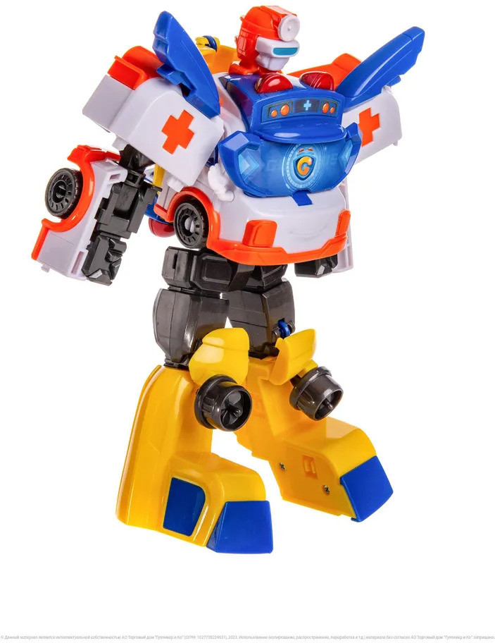 💳 Оплатить за товар можно при получении 🇰🇿 Есть бесплатная доставка по Казахстану от 1 дня 🎁 Копите бонусы с каждой покупки Робот трансформер 2 в 1 — отличная игрушка, которая обладает функцией трансформации двух различных транспортных средств в мощного робота высотой 20.5 см! Захватывающая трансформация машины скорой помощи и корабля обязательно понравится всем мальчишкам. Скорая помощь и корабль — это герои мультфильма «Автобус Гордон», в которых превращается школьный автобус, помогая малышам в различных сложных ситуациях. Благодаря невероятной гибкости и интригующим возможностям трансформации машинок в робота, дети могут погрузиться в захватывающий мир автобуса Гордона и его друзей, а также придумывать собственные истории и сюжеты. Трансформер изготовлен из качественного пластика, без посторонних запахов и острых углов. |