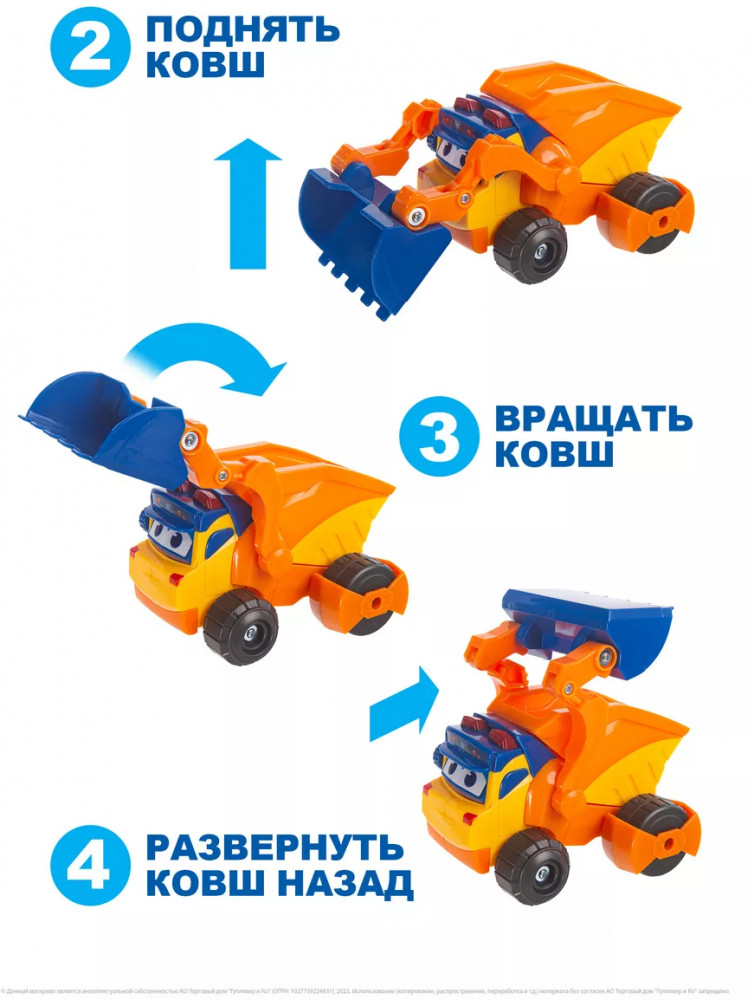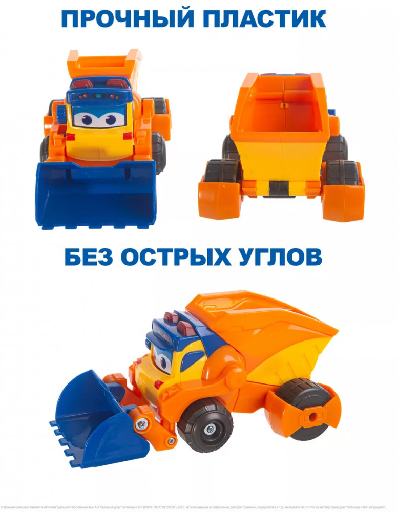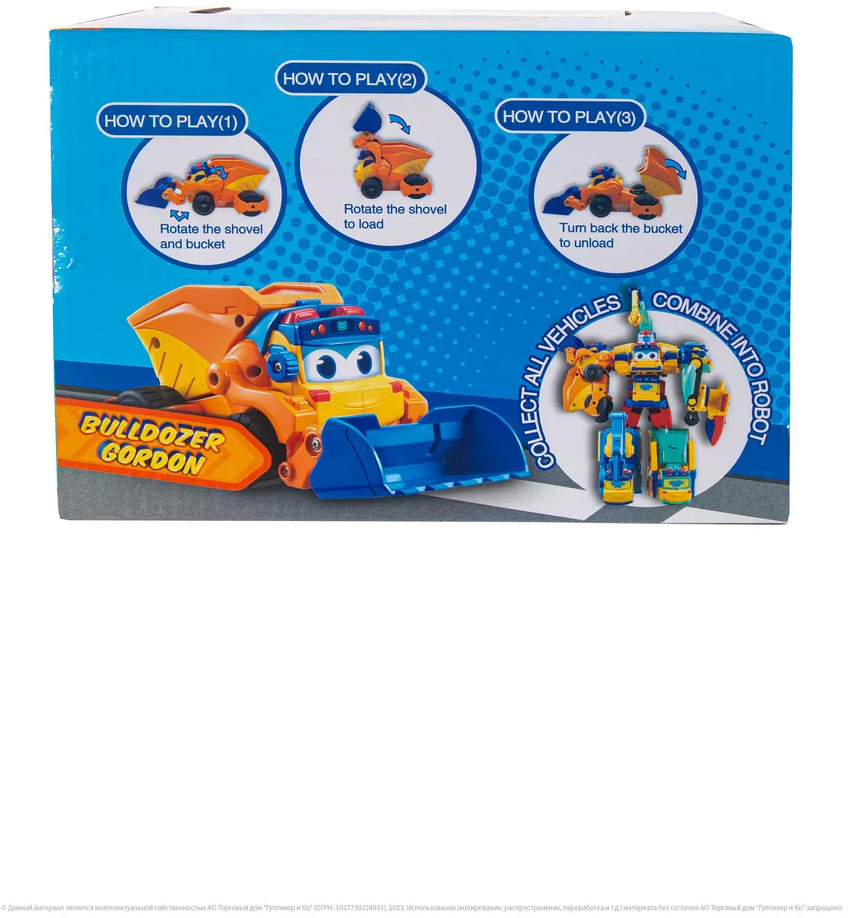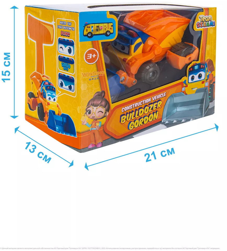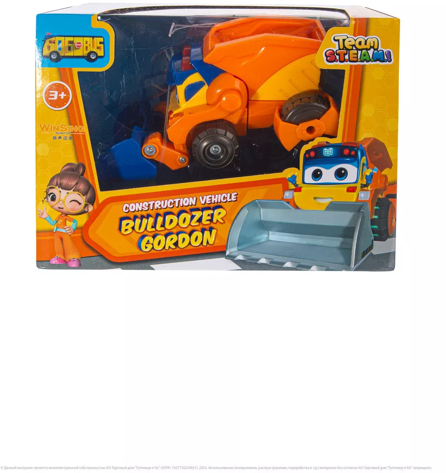GoGo Bus Машина-трансформер «Бульдозер»В данный момент этот товар отсутствует в продаже. Возможно, у нас найдется аналогичный или похожий товар здесь. Серия: Строительные машины Машина бульдозер с ковшом из серии строительные машины по мотивам мультсериала Команда Steam и Автобус Гордон понравится всем любознательным малышам. У машинки яркий желтый цвет корпуса, синие элементы и ковш, веселая мордочка, а также закругленные безопасные углы и прочные колеса. А если нажать на кнопку, то машина для малышей поменяет выражение глаз. Все машинки строительная техника отличаются высокой износоустойчивостью и оснащены подвижными элементами: трап или кран у грузовика, ковш у бульдозера, подвижные элементы у автобуса др. Если собрать все шесть машинок линейки, то получится не просто отличный набор машинок строительной техники, но и можно будет собрать одного большого робота 33 см! Такая техника украсит и коллекцию других моделей автомобилей и спецтехники. Машинка детская поможет малышу развивать мелкую моторику рук, логическое мышление, воображение и координацию. |