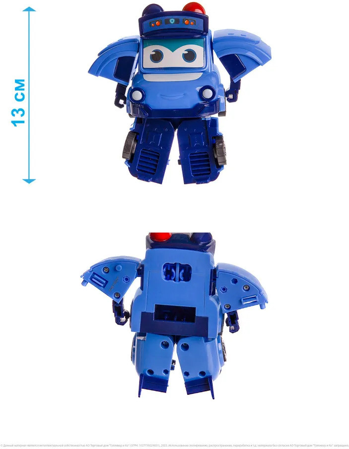 💳 Оплатить за товар можно при получении 🇰🇿 Есть бесплатная доставка по Казахстану от 1 дня 🎁 Копите бонусы с каждой покупки Трансформер Полицейская машина — один из персонажей, в которые превращается главный герой мультсериала Автобус Гордон. В мультфильме автобус Гордон помогает детям в сложных ситуациях, легко превращаясь в различные транспортные средства. По сюжету автобус может трансформироваться не только в полицейскую машину, но и самолет, корабль, скорую помощь и пожарную машину. Полицейская машина игрушка трансформируется и собирается в робота с помощью нескольких простых движений, и также происходит обратная трансформация. Игрушка для детей полностью повторяет своего мультипликационного героя. Детям нравятся игрушки роботы трансформеры, поскольку в данном случае можно играть сначала одной игрушкой, а после трансформации — другой. С помощью робота трансформера можно разыгрывать различные сценки из мультфильма. |