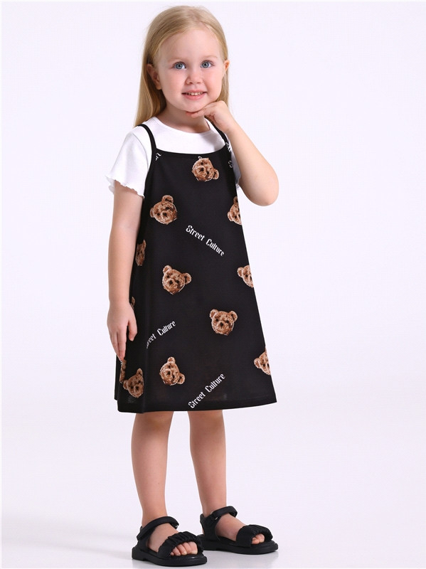 Летний комплект для девочки: сарафан и футболка из натурального хлопкового трикотажа. Футболка и платье на тонких бретелях вместе создают трендовый эффект многослойности, а яркая набивка поднимет настроение Вашему ребенку. Материал — легкий хлопок, невероятно мягкий и приятный к телу, при этом гипоаллергенный, хорошо пропускает воздух, позволяя коже дышать. Платье трапециевидного кроя длиной до колена удобное и комфортное — идеально для дома, детского сада и летних прогулок. Футболка прилегающего силуэта выполнена из мягкого эластичного полотна в рубчик. Модель идеально подходит для детского сада: без застежки и пуговиц — ребенок сможет сам переодеваться без помощи взрослых. Детская одежда от бренда Апрель — сочетание фирменного дизайна, современного кроя, качества и комфорта. Все изделия сертифицированные и отвечают требованиям санитарно-гигиенических норм Российской Федерации и Евразийского экономического союза.