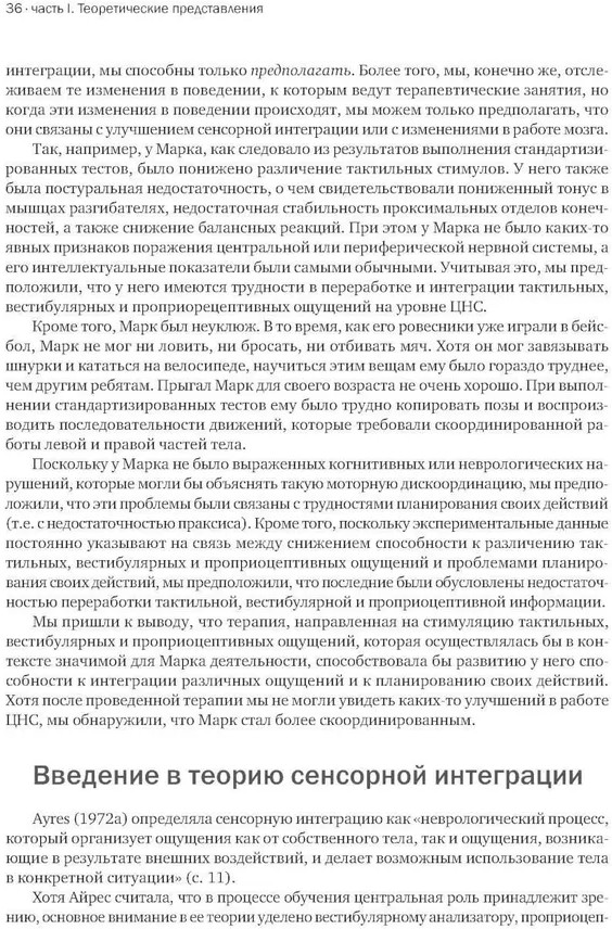 Классический труд Э. Джин Айрес — одного из самых известных и уважаемых в западном научном мире специалистов по детскому развитию — впервые публикуется на русском языке. Разработанная автором теория сенсорной интеграции, основанная на системном подходе к функционированию мозга, помогает понять связь процессов обработки сенсорной информации с поведением и обучением ребенка, увидеть, что школьная неуспеваемость, поведенческие трудности и многое другое — в большинстве случаев не результат плохого воспитания или лени ребенка, а реальные проблемы, требующие пристального внимания и планомерных занятий. Методам преодоления такого рода проблем посвящена значительная часть книги. Книга предназначена как самым разным специалистам (неврологам, психологам, педагогам, специалистам по физической и социальной реабилитации, эрготерапевтам),так и родителям, которые смогут по-новому взглянуть на проблемы и трудности своих детей и выработать стратегию их поддержки, используя рекомендации автора.