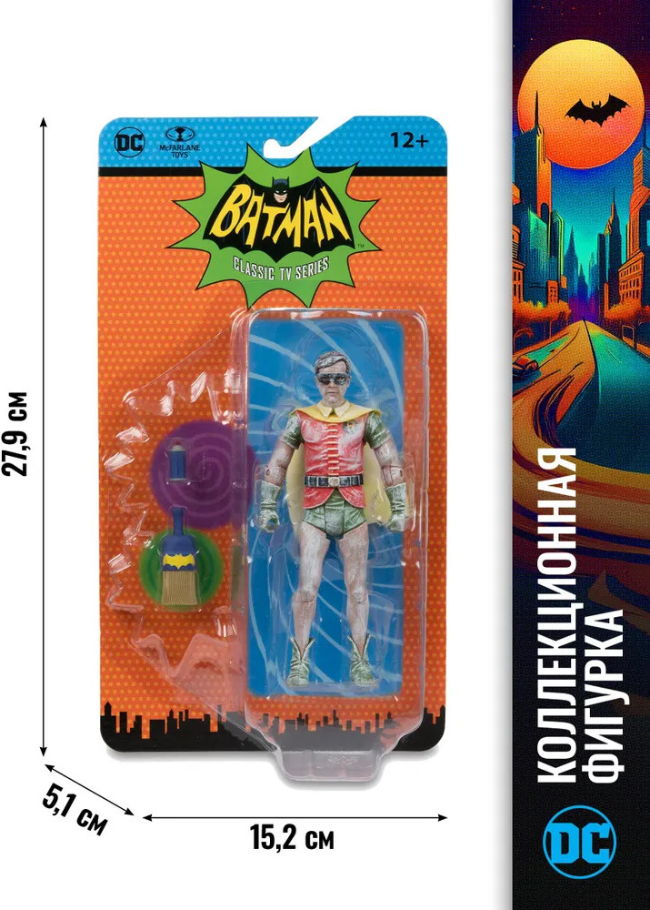 💳 Оплатить за товар можно при получении 🇰🇿 Есть бесплатная доставка по Казахстану от 1 дня 🎁 Копите бонусы с каждой покупки Серия: DC Бэтмен 66 Фигурка МакФарлен Робин (DC Бэтмен 66) в блистере с прозрачным окном. Акробат Дик Грейсон Робин став подопечным Бэтмена, превратился в опытного бойца и потрясающего акробата, подающего пример для подражания. Но истинная сила мальчика-Вундеркинда, возможно, в том, что он и не был Бэтменом и служил маяком надежды для совей семьи на протяжении всего мрачного крестового похода Темного рыцаря. Основано на классическом телешоу 1960-х годов. Фигурка разработана с несколькими точками артикуляции, чтобы принимать различные позы во время игры. Соберите все ретро-фигурки МакФарлен DC. |
