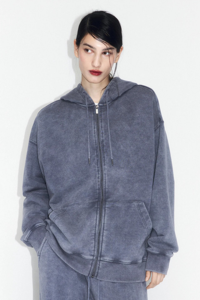 Худи-зипка с вареным эффектом из новой весенней коллекции станет базой твоих аутфитов на несколько сезонов. Стильный и суперудобный оверсайз-джемпер с капюшоном для расслабленных повседневных луков на каждый день. Сочетай его с трендовыми брюками-парашютами и создавай стильные уличные луки, которые никогда не выйдут из моды. Большая и уютная оверсайз-толстовка на молнии с капюшоном — мастхэв любого гардероба и абсолютно беспроигрышный вариант на любое время года.