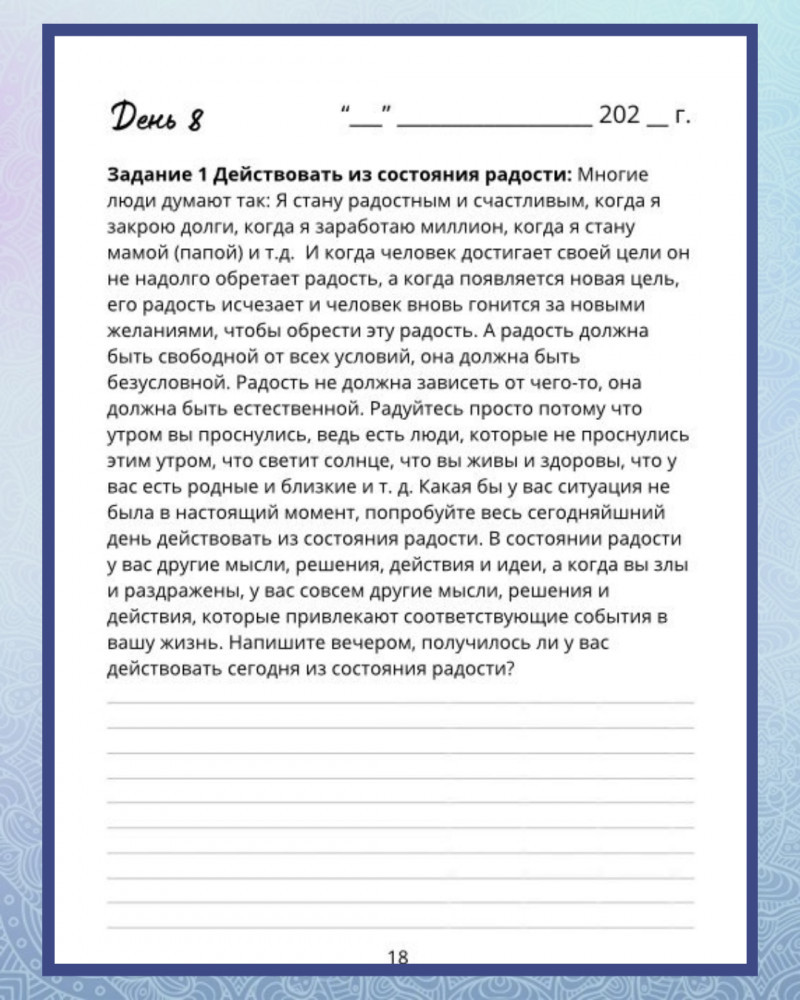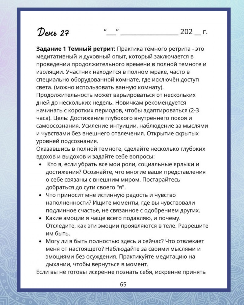 💳 Оплатить за товар можно при получении 🇰🇿 Есть бесплатная доставка по Казахстану от 1 дня 🎁 Копите бонусы с каждой покупки Практический ежедневник «30 дней к свету» — это ваш путеводитель к внутренней гармонии, радости и любви. |