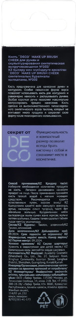 Deco. Кисть для румян и скульптурирования №202В данный момент этот товар отсутствует в продаже. Возможно, у нас найдется аналогичный или похожий товар здесь. Серия: Make up brush cheek Кисть предназначена для нанесения румян и контуринга. Особая скошенная форма ворса позволяет использовать кисть для контуринга и равномерно наносить и растушевывать румяна. Особая короткая ручка позволяет максимально контролировать процесс нанесения. Кисть сделана из высококачественного гипоаллергенного синтетического ворса таклона, который не впитывает много продукта и сохраняет свою форму после многократного использования. После применения промойте кисть теплой водой с мягким моющим средством. Рекомендуется сушить естественным путем, ворсом вниз. |