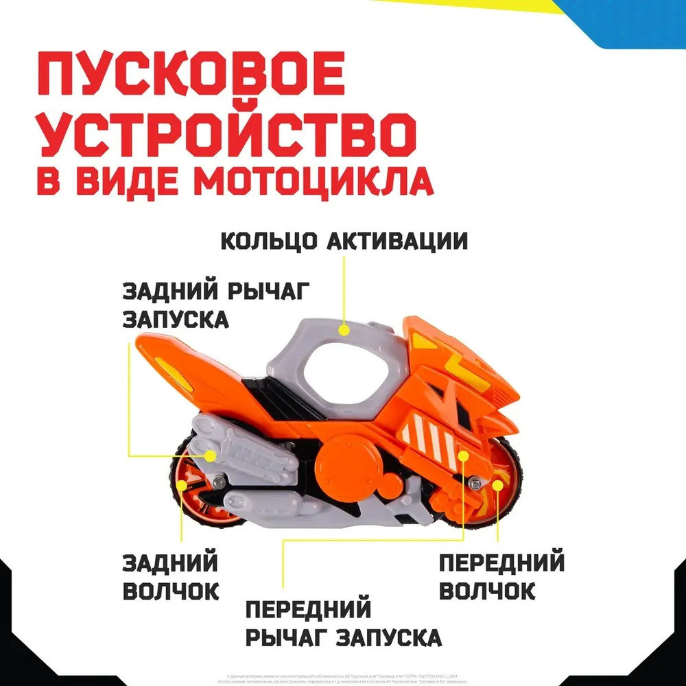 💳 Оплатить за товар можно при получении 🇰🇿 Есть бесплатная доставка по Казахстану от 1 дня 🎁 Копите бонусы с каждой покупки Серия: Мотофайтеры Устрой эпичный блейд-баттл с Мотофайтерами — совершенно новым типом блейдов (волчков), имеющих корпус мотоцикла в качестве пускового устройства, а колеса мотоцикла являются двусторонними волчками. Основная особенность пусковой установки Мотофайтеры состоит в том, что после запуска переднего волчка пусковой механизм автоматически переключается на заднее колесо мотоцикла и второй волчок сразу можно запустить на арену в самый неожиданный для противника момент. Блейды Мотофайтеры — уникальные двусторонние металлические волчки. Они имеют с обеих сторон прочные металлические наконечники различной формы (спиннер-топы). |