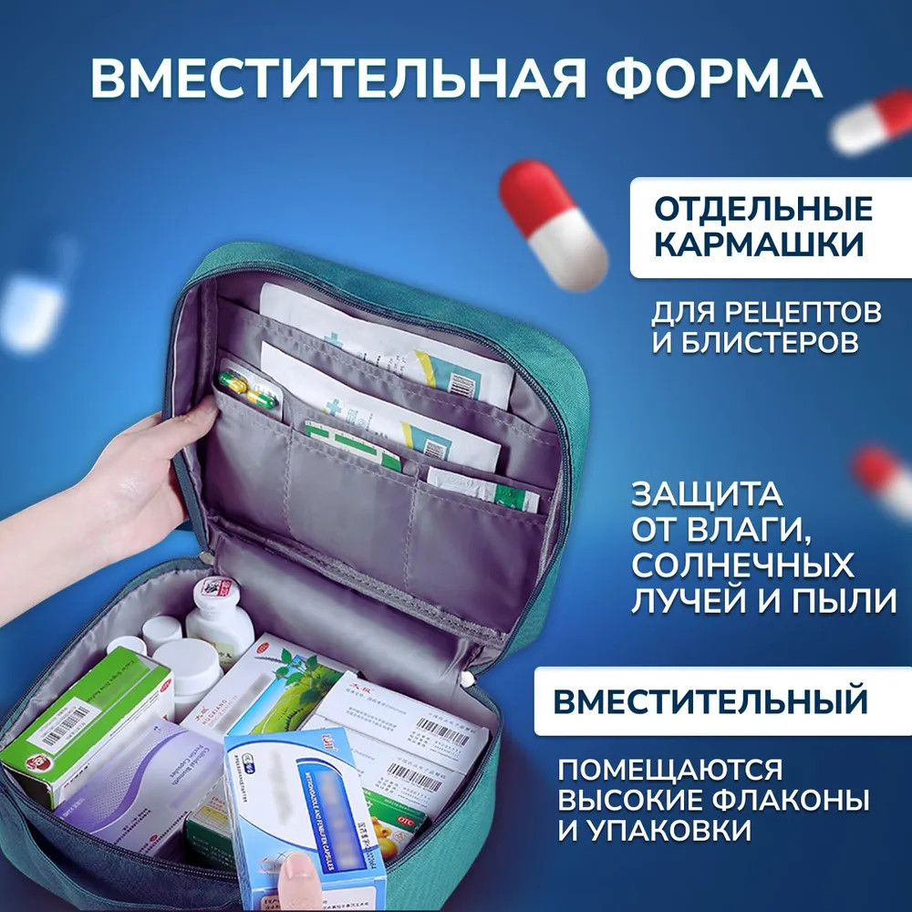 вместительная много отделов удобная В данный момент этот товар отсутствует в продаже. Возможно, у нас найдется аналогичный или похожий товар здесь. Серия: Home Goods В современном ритме жизни нам нужно поддерживать здоровье необходимыми витаминами, микроэлементами или лекарствами. Медицинские препараты желательно, а иногда жизненно необходимо держать под рукой дома, в дороге, в машине, в путешествии. При этом важно, чтобы аптечка была компактная и лёгкая. Сумка для хранения лекарств является практичным решением этого вопроса.