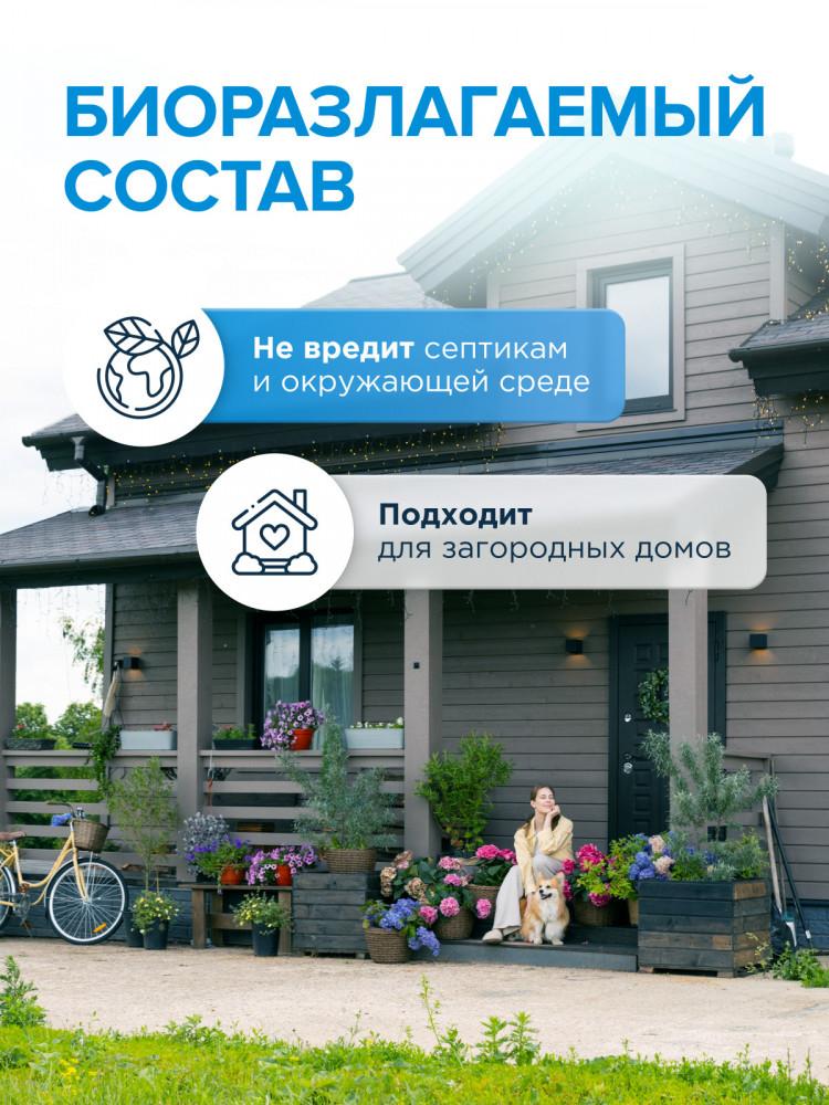 ® в Германии. Биоразлагаемые компоненты не вредят микрофлоре септических установок при использовании средства в соответствии со способом применения.
