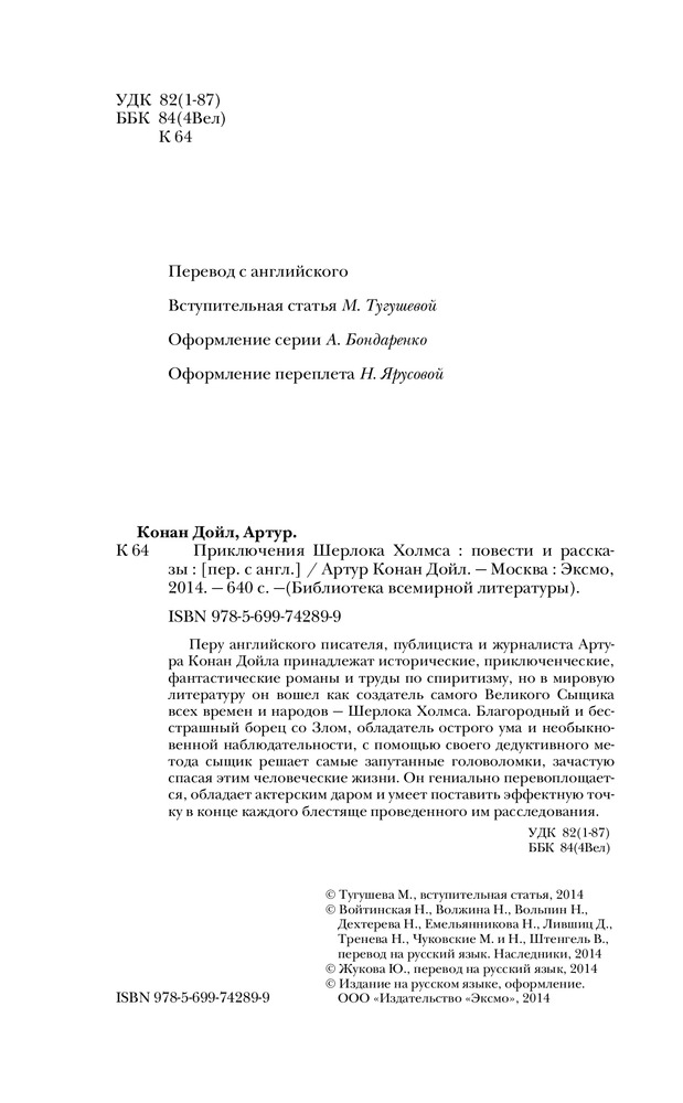 В данный момент этот товар отсутствует в продаже. Возможно, у нас найдется аналогичный или похожий товар здесь. Серия: Библиотека Всемирной Литературы Перу английского писателя, публициста и журналиста Артура Конан Дойла принадлежат исторические, приключенческие, фантастические романы и труды по спиритизму, но в мировую литературу он вошел как создатель самого Великого Сыщика всех времен и народов - Шерлока Холмса. Благородный и бесстрашный борец со Злом, обладатель острого ума и необыкновенной наблюдательности, с помощью своего дедуктивного метода сыщик решает самые запутанные головоломки, зачастую спасая этим человеческие жизни. Он гениально перевоплощается, обладает актерским даром и умеет поставить эффектную точку в конце каждого блестяще проведенного им расследования. |