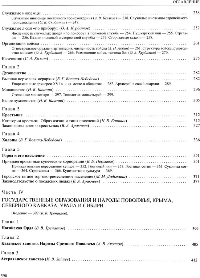 Вторая книга четвертого тома посвящена таким важным темам истории России XVI в., как Церковь, культура и социальная структура общества. Рассматривается история государственных образований и народов Поволжья, Северного Кавказа, Урала и Сибири, вошедших в XVI в. в состав Российского государства. В главах, посвященных разным группам населения (служилых людей, духовенства, купцов, посадских людей, крестьян и холопов), а также регионам показан процесс формирования единого государства. Изменения, происходившие в культуре, были направлены на выработку единой культурной традиции, которая была неотделима от государственной идеологии. Так история и культура России XVI в. заложили основы будущей Российской империи. Для широкого круга читателей. |