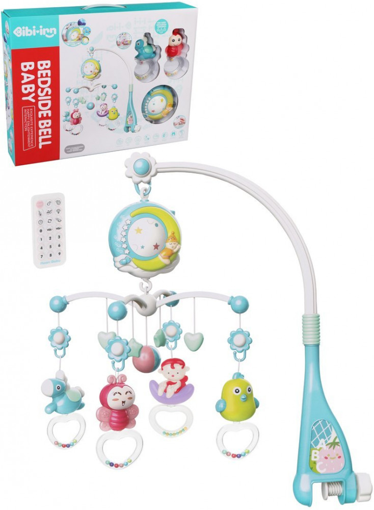 Игрушка работает от 3 батареек типа АА на 1,5 V (не входят в комплект), 1 батарейки типа CR2025 для пульта (входит в комплект). Удобный пульт дистанционного управления, с помощью которого можно управлять всеми музыкальными функциями. Возможность установить таймер на 20/40/60 минут. Поставляется в разобранном виде, легко собирается и надежно крепится к спинке кроватки. Изготовлено из полимерных материалов.