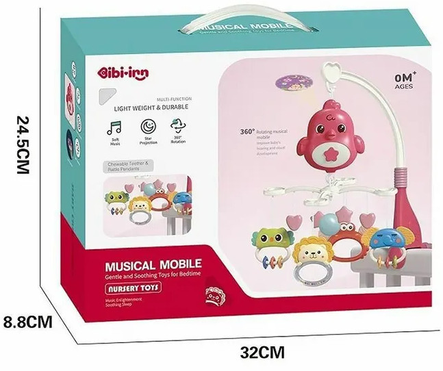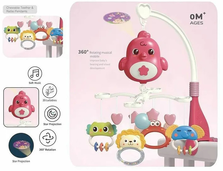 Детский музыкальный мобиль в кроватку — первая игрушка и прекрасный подарок для новорожденного малыша и его родителей. С его помощью любимый ребенок будет познавать окружающий мир и полноценно развиваться, тренируя основные навыки. Мобиль с проекцией звездного неба успокоит маленького непоседу и настроит его на долгий и сладкий сон. Кроме того, подобные детские игрушки развивают у малышей слуховое и зрительное восприятие, способность различать цвета и концентрировать внимание. Во время бодрствования малыш не будет скучать и капризничать, а, наоборот, порадует маму и папу заливистым смехом. Музыкальная карусель на кроватку может воспроизводить 20 мелодий. Мобиль с ночником прост в использовании. Товар для малышей легко собрать и прикрепить к кроватке. Подвесные игрушки-погремушки в виде фигурок животных легко снимаются с мобиля и их можно использовать отдельно.
