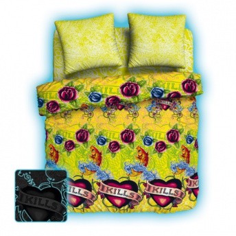 Комплект постельного белья «Tattoo» изготовлен из ткани, которая при наступлении ночи или же в полумраке начинает светиться. Свечение возникает за счет печати флуоресцентной краской на полотне.