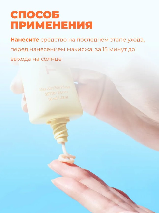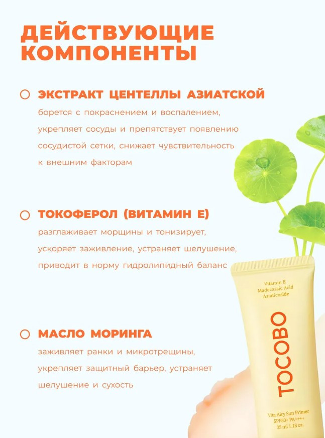 💳 Оплатить за товар можно при получении 🇰🇿 Есть бесплатная доставка по Казахстану от 1 дня 🎁 Копите бонусы с каждой покупки Tocobo Vita Airy Sun Primer SPF50+ — солнцезащитное средство и праймер, закрывающий поры, в одном средстве! Шелковистый солнцезащитный праймер с витамином и цикаином, закрывающий поры и контролирующий выделение себума, с бесцветной текстурой бальзама. |
