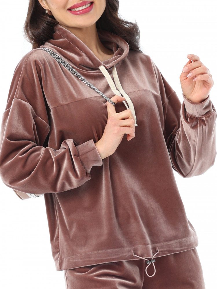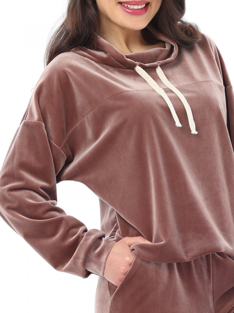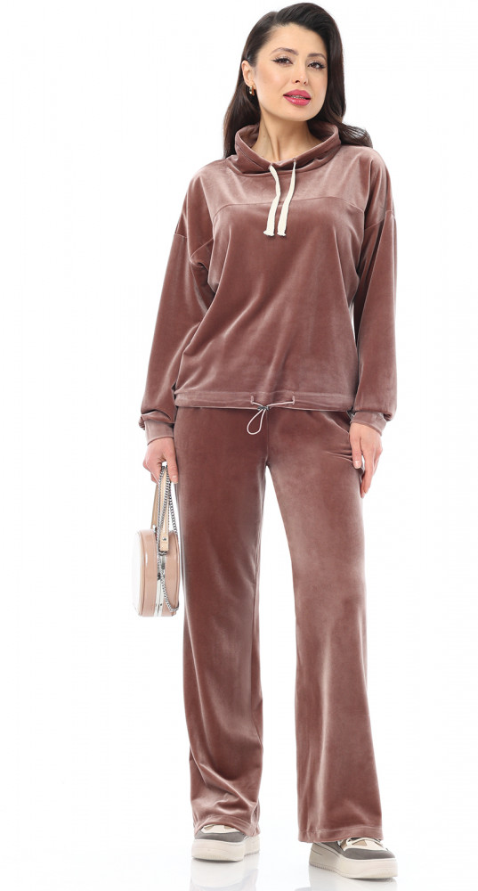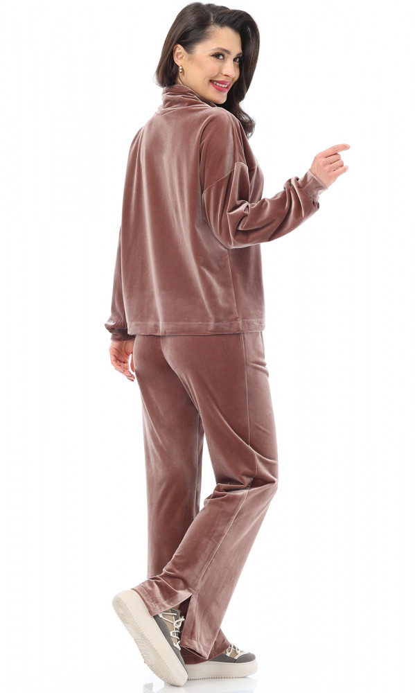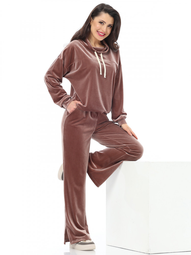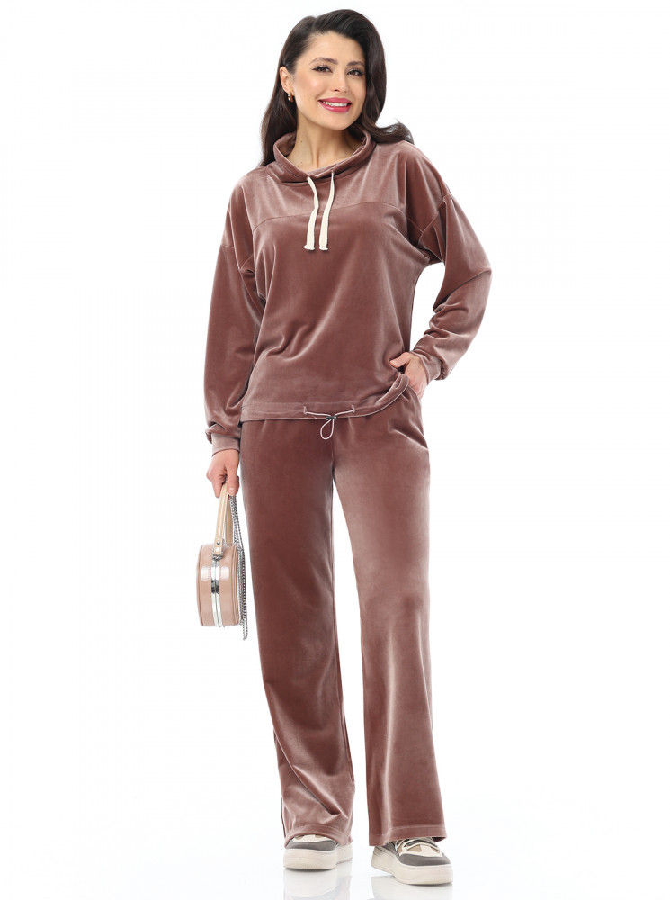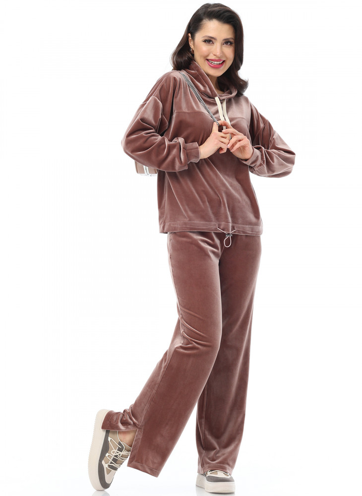 Изготовлен из мягкого и приятного на ощупь бархата, который обеспечивает комфорт и легкость в носке. Бархатная ткань хорошо сохраняет тепло, что делает костюм подходящим для любых погодных условий. Костюм состоит из двух частей: свитшот и брюк. С помощью кулиски можно регулировать плотность прилегания. Брюки оснащены эластичной резинкой на талии, что обеспечивает комфортную посадку и свободу движений. Эластичный пояс адаптируется к разным типам фигуры, обеспечивая максимальное удобство при занятиях спортом. Прямой крой брюк и отсутствие лишних деталей делают их удобными для любых видов активности. Уход за спортивным костюмом требует бережной стирки при температуре 30 градусов. Это позволяет сохранить яркость цвета и мягкость ткани на длительное время. Рекомендуется избегать использования агрессивных моющих средств и отбеливателей, чтобы предотвратить повреждение ткани и потускнение цвета.