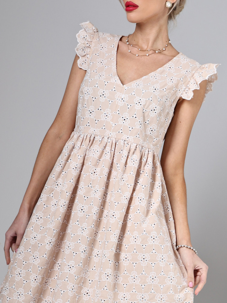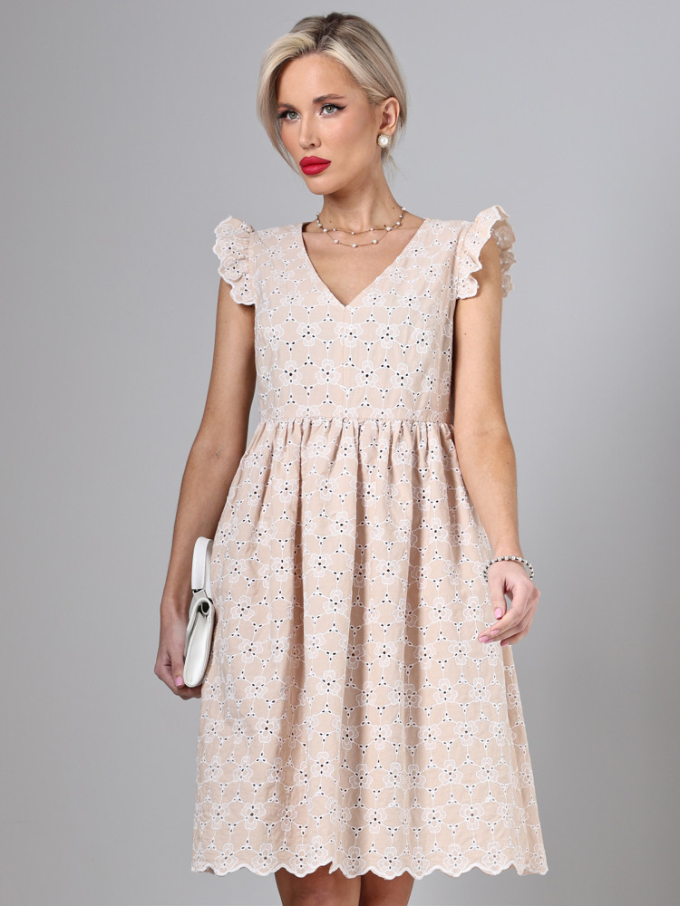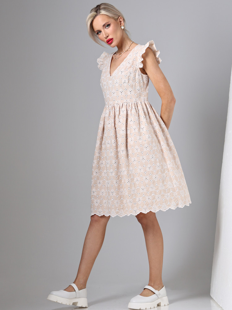 Платье - идеальный выбор для летнего гардероба. Оно выполнено из легкой платьельной ткани с цветочным принтом, которая обеспечивает комфорт в жаркие дни. Ткань обладает хорошей воздухопроницаемостью, что позволяет коже дышать и предотвращает перегревание. Это платье создано для тех, кто ценит простоту и элегантность. Основной акцент в дизайне сделан на V-образный вырез горловины, который добавляет изделию элегантности и подчеркивает линию декольте. Вырез визуально удлиняет шею, делая образ более утонченным. Платье не имеет рукавов, что обеспечивает свободу движений и дополнительное удобство в жаркую погоду. Отсутствие рукавов также придает наряду легкость и непринужденность, делая его идеальным для повседневной носки или вечерних прогулок. Модель платья имеет прямой силуэт, который подходит для большинства типов фигур. Прямой крой помогает скрыть возможные недостатки и подчеркивает достоинства, создавая женственный и стильный образ. Такое платье будет отлично сочетаться с различными аксессуарами и обувью, позволяя создавать разнообразные комплекты для разных случаев. Для поддержания изделия в отличном состоянии рекомендуется бережная стирка при 30 градусах. Такой уход сохранит цвет и форму платья, обеспечивая его долговечность и красивый внешний вид на протяжении долгого времени. Простота в уходе делает это платье практичным и удобным выбором для активных женщин, ценящих свое время и комфорт. Это платье станет отличным дополнением вашего летнего гардероба. Его универсальный дизайн и продуманные детали делают его подходящим как для повседневной носки, так и для более официальных мероприятий. Независимо от того, куда вы направляетесь - на работу, прогулку с друзьями или романтический ужин, это платье поможет вам выглядеть стильно и привлекательно в любой ситуации.