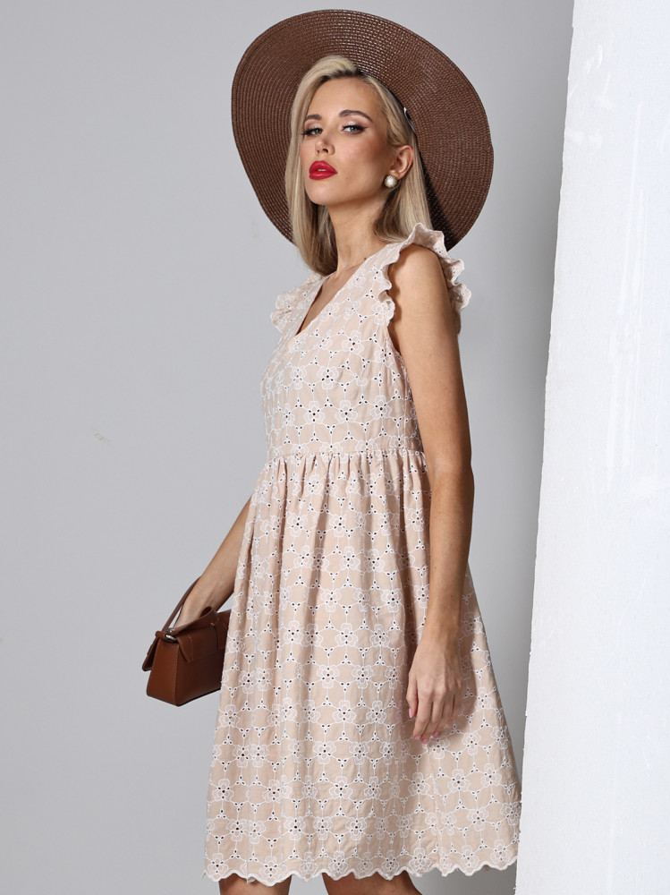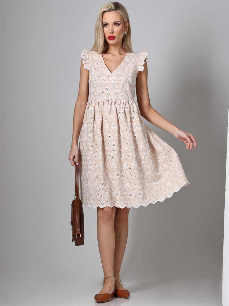 Платье - идеальный выбор для летнего гардероба. Оно выполнено из легкой платьельной ткани с цветочным принтом, которая обеспечивает комфорт в жаркие дни. Ткань обладает хорошей воздухопроницаемостью, что позволяет коже дышать и предотвращает перегревание. Это платье создано для тех, кто ценит простоту и элегантность. Основной акцент в дизайне сделан на V-образный вырез горловины, который добавляет изделию элегантности и подчеркивает линию декольте. Вырез визуально удлиняет шею, делая образ более утонченным. Платье не имеет рукавов, что обеспечивает свободу движений и дополнительное удобство в жаркую погоду. Отсутствие рукавов также придает наряду легкость и непринужденность, делая его идеальным для повседневной носки или вечерних прогулок. Модель платья имеет прямой силуэт, который подходит для большинства типов фигур. Прямой крой помогает скрыть возможные недостатки и подчеркивает достоинства, создавая женственный и стильный образ. Такое платье будет отлично сочетаться с различными аксессуарами и обувью, позволяя создавать разнообразные комплекты для разных случаев. Для поддержания изделия в отличном состоянии рекомендуется бережная стирка при 30 градусах. Такой уход сохранит цвет и форму платья, обеспечивая его долговечность и красивый внешний вид на протяжении долгого времени. Простота в уходе делает это платье практичным и удобным выбором для активных женщин, ценящих свое время и комфорт. Это платье станет отличным дополнением вашего летнего гардероба. Его универсальный дизайн и продуманные детали делают его подходящим как для повседневной носки, так и для более официальных мероприятий. Независимо от того, куда вы направляетесь - на работу, прогулку с друзьями или романтический ужин, это платье поможет вам выглядеть стильно и привлекательно в любой ситуации.