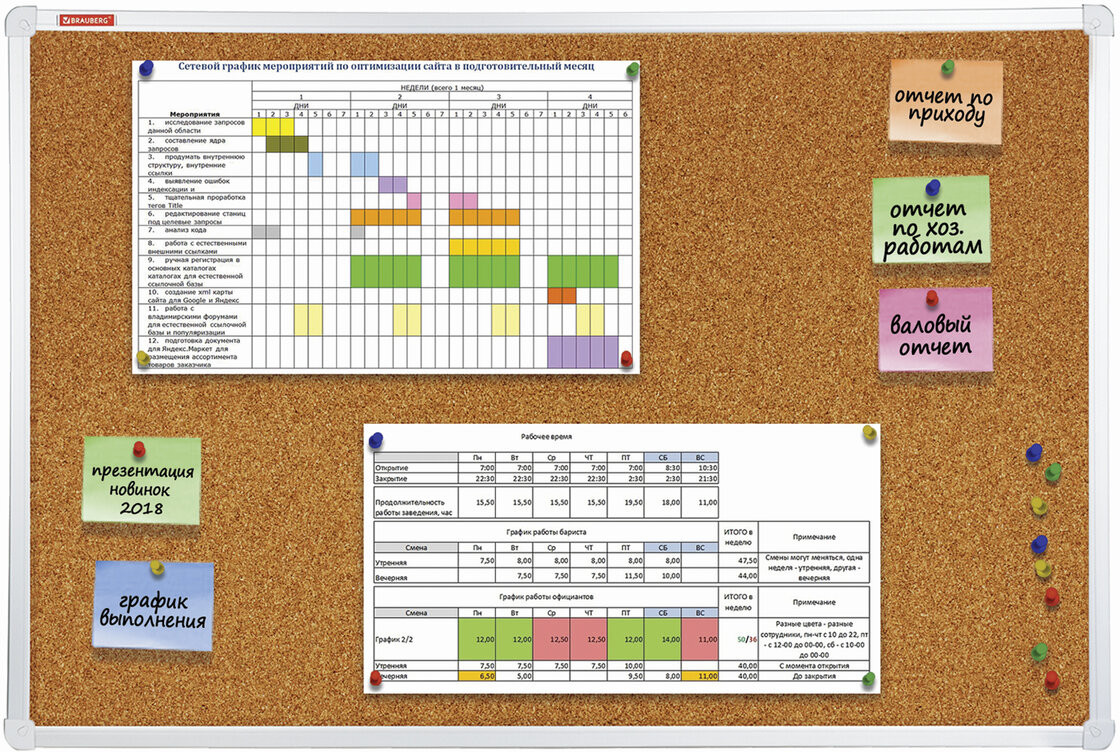 💳 Оплатить за товар можно при получении 🇰🇿 Есть бесплатная доставка по Казахстану от 1 дня 🎁 Копите бонусы с каждой покупки Пробковая доска Brauberg позволит разместить объявления при помощи кнопок и офисных булавок. Широко используется в организациях различного рода деятельности. Поверхность изготовлена из натуральной пробки. Имеет улучшенную алюминиевую рамку и укрепленные пластиковые уголки. Размер доски — 60×90×1,5 см. Цвет покрытия: коричневый. Возможность горизонтального и вертикального размещения доски. Крепится к стене, элементы крепления входят в комплект. |