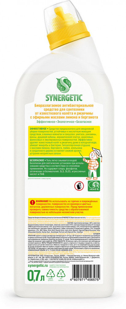 Synergetic Средство биоразлагаемое для мытья сантехники «Кристальная чистота»