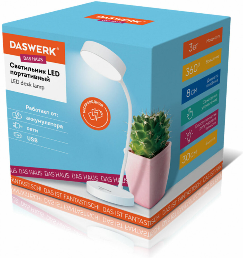 Daswerk Лампа настольная-20% +122 компактность удобство для работы нет автономности