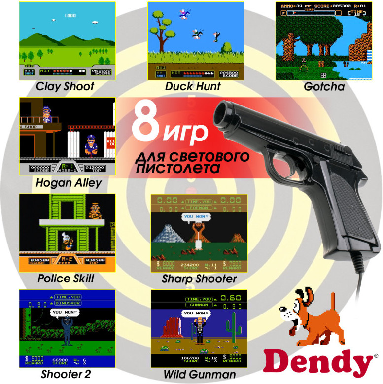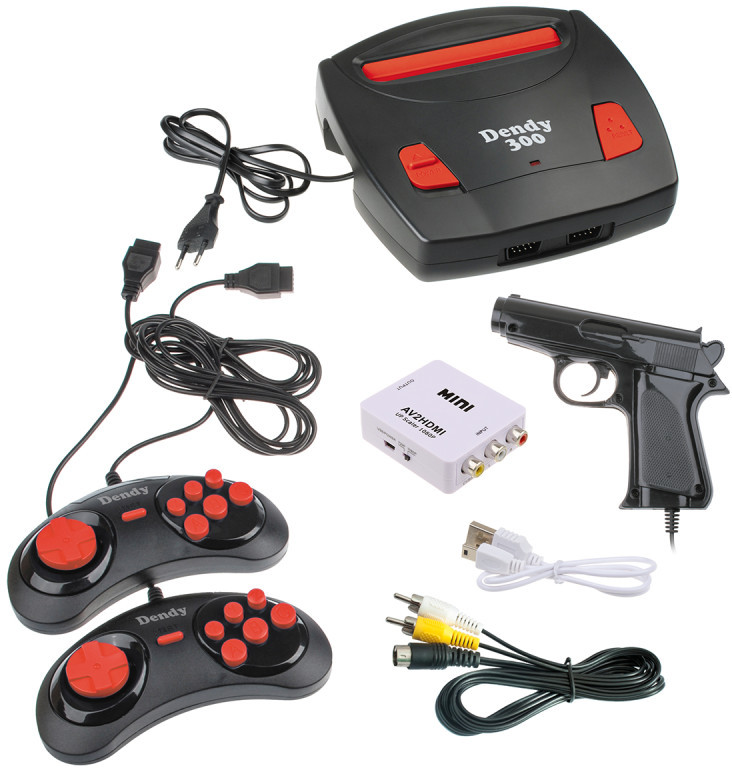 Dendy 300 поддерживает картриджи, позволяя вам расширить коллекцию и наслаждаться еще большим количеством игр. Однако учтите, что игровой пистолет работает только на ЭЛТ телевизорах. Легкая и простая в использовании, Dendy 300 станет отличным спутником для вечеров с друзьями и семейных встреч. Погрузитесь в ностальгию и откройте для себя магию ретро-игр с Dendy 300!