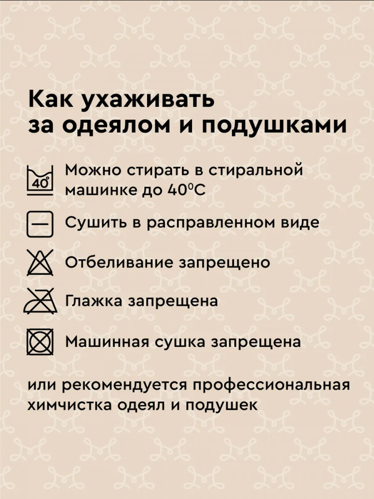 Одеяло из овечьей шерсти — это идеальный выбор для тех, кто ценит тепло, комфорт и качество сна. Овечья шерсть обладает уникальными свойствами терморегуляции, поддерживая оптимальную температуру тела зимой и летом делая одеяло всесезонным. Она также отлично впитывает влагу, обеспечивая сухость и свежесть во время сна. Овечья шерсть известна своими гипоаллергенными качествами, что делает такое одеяло безопасным выбором даже для людей с чувствительной кожей. Легкость и мягкость материала создают ощущение уюта и комфорта, помогая быстро расслабиться и насладиться глубоким сном.