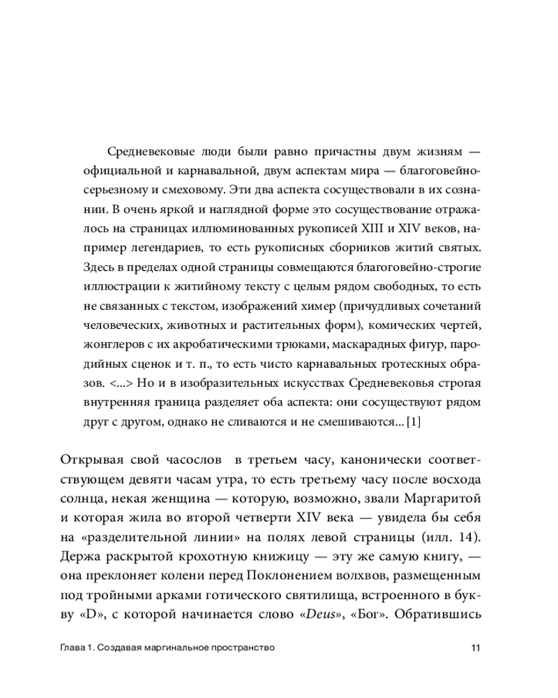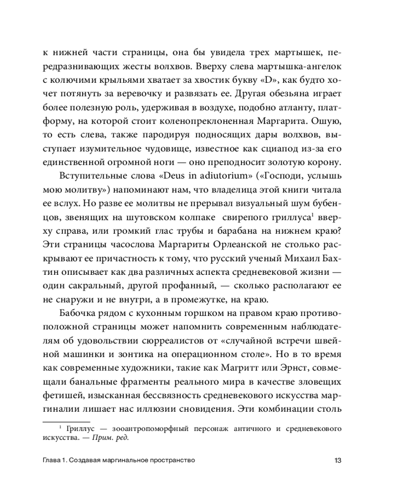 Майкл Камил исследует буйное царство маргинального искусства, анализируя его символику, функции и социокультурный контекст, который часто остается вне поля зрения большинства исследователей. Читатель узнает, зачем на крыши соборов помещали статуи гаргулий и химер, какую роль играли изображения акробатов и шутов в убранстве монастырей, а также почему священнослужители, рыцари, крестьяне и проститутки становились участниками непристойных и потешных сцен на полях средневековых изданий часословов и работ древних философов. Особое внимание автор уделяет взаимодействию между текстом и изображением, а также тому, как маргинальная иконография отражала мировоззрение и повседневную жизнь людей того времени.