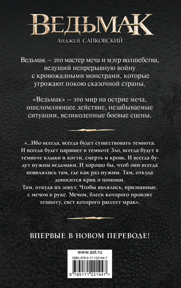 💳 Оплатить за товар можно при получении 🇰🇿 Есть бесплатная доставка по Казахстану от 1 дня 🎁 Копите бонусы с каждой покупки Серия: Легендарные фантастические сериалы «...Ибо всегда, всегда будет существовать темнота. И всегда будет царящее в темноте Зло, всегда будут в темноте клыки и когти, смерть и кровь. И всегда будут нужны ведьмаки. И хорошо бы, чтоб они всегда появлялись там, где как раз нужны. Там, откуда доносится крик о помощи. Там, откуда их зовут. Чтобы являлись, призванные, с мечом в руке. Мечом, блеск которого пронзит темноту, свет которого рассеет мрак». |