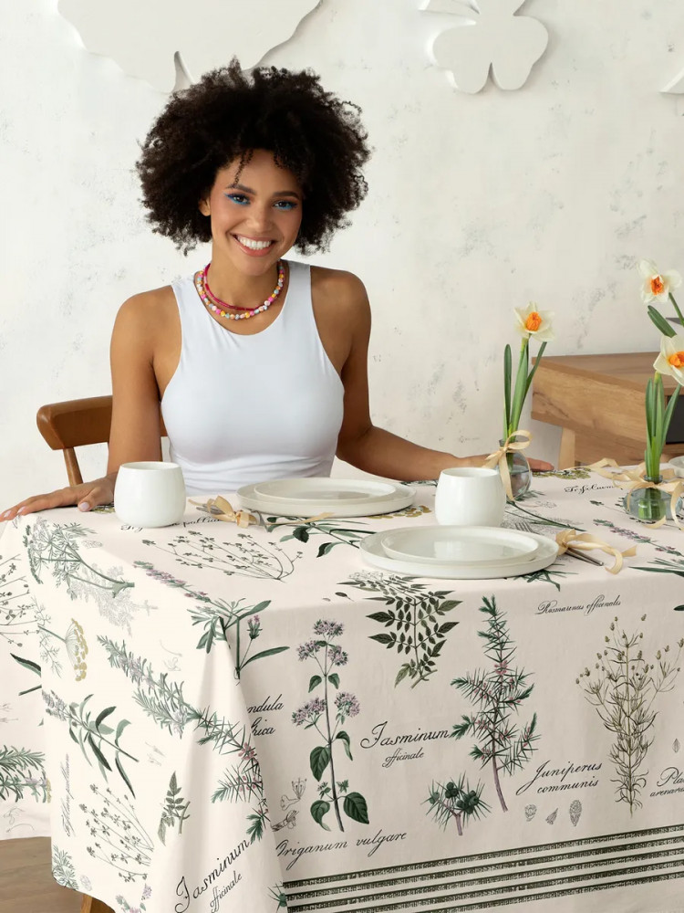 Большая скатерть, на большой обеденный стол в разложенном состоянии. Хорошо стирается, на столе смотрится симпатично, особенно с зелеными салфетками!