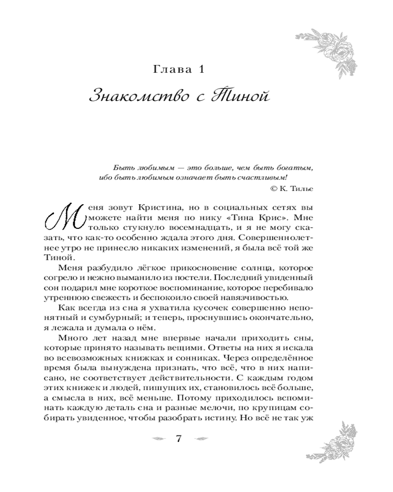 Книга «Тина Крис. Её личный сонник» — это тонко созданный аромат для истинного ценителя. Нотки удивительно подобраны, выдержаны и гармонируют в единстве, чтобы дарить своему обладателю гамму оригинальных и ни с чем несравнимых эмоций.