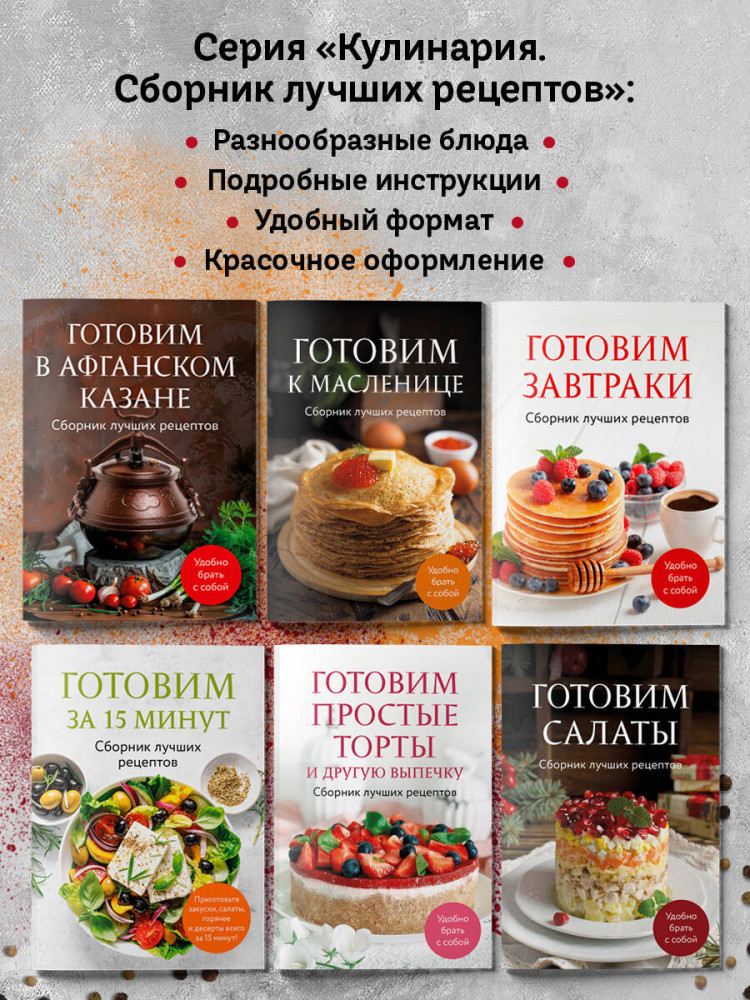 | Добро пожаловать в мир издательства «ХлебСоль», который стал настоящим меккой для любителей кулинарного искусства. Мы с гордостью занимаем лидирующую позицию на рынке кулинарных книг, предоставляя вам уникальные источники вдохновения и гастрономических открытий. Мы сотрудничаем с ведущими гастрономическими экспертами и знаменитыми food-блогерами. Наши авторы — настоящие гуру в мире кулинарии, чьи знания и опыт делают наши книги драгоценным сокровищем для любителей готовить. Каждый рецепт,... |