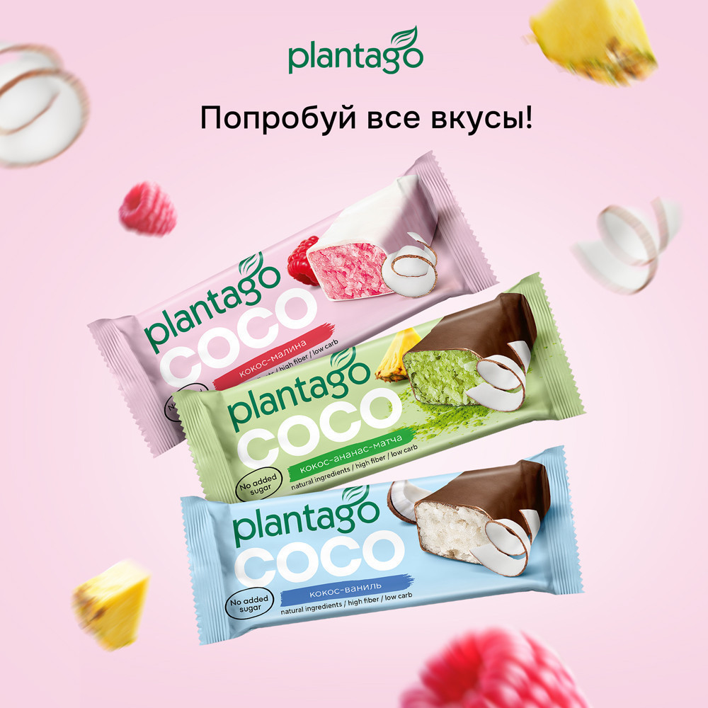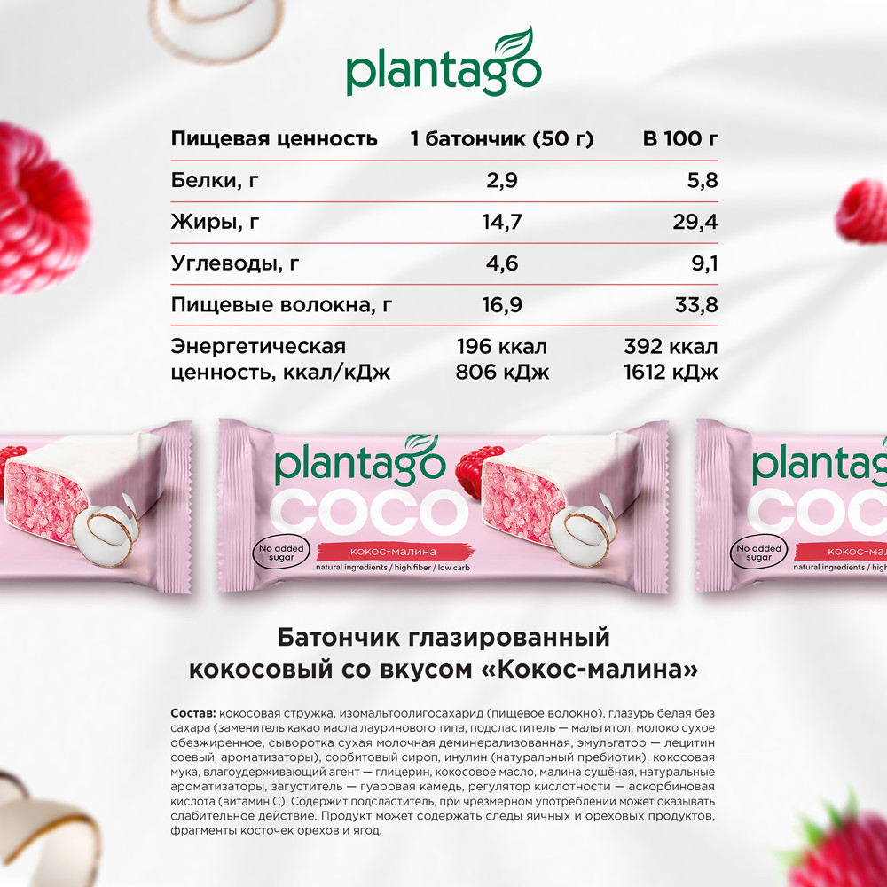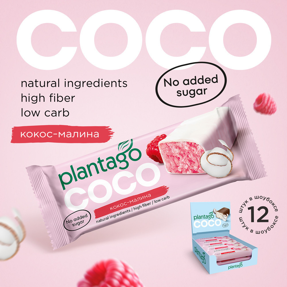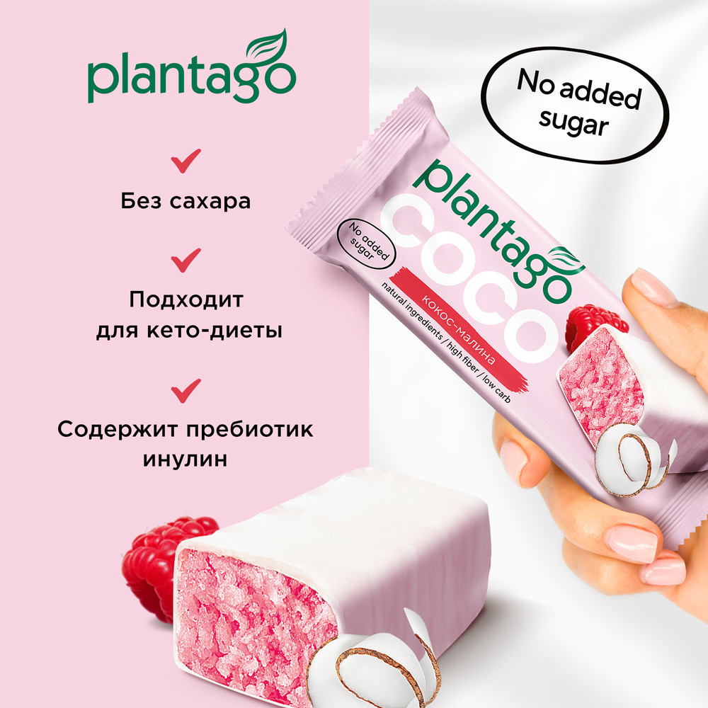 Plantago Набор батончиков кокосовых без сахара в шоколаде со вкусом малины «COCO»