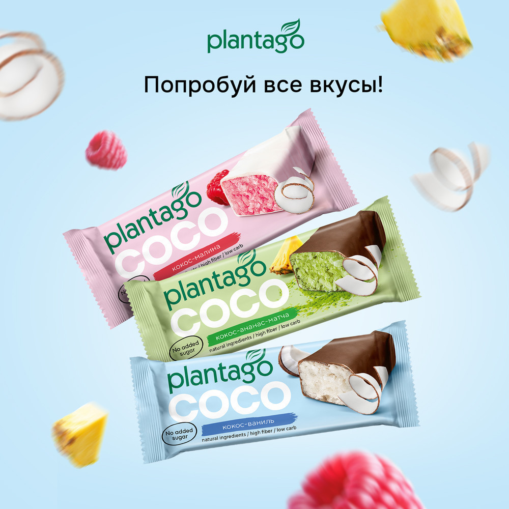 Plantago Набор батончиков кокосовых без сахара в шоколаде со вкусом ванили «COCO»