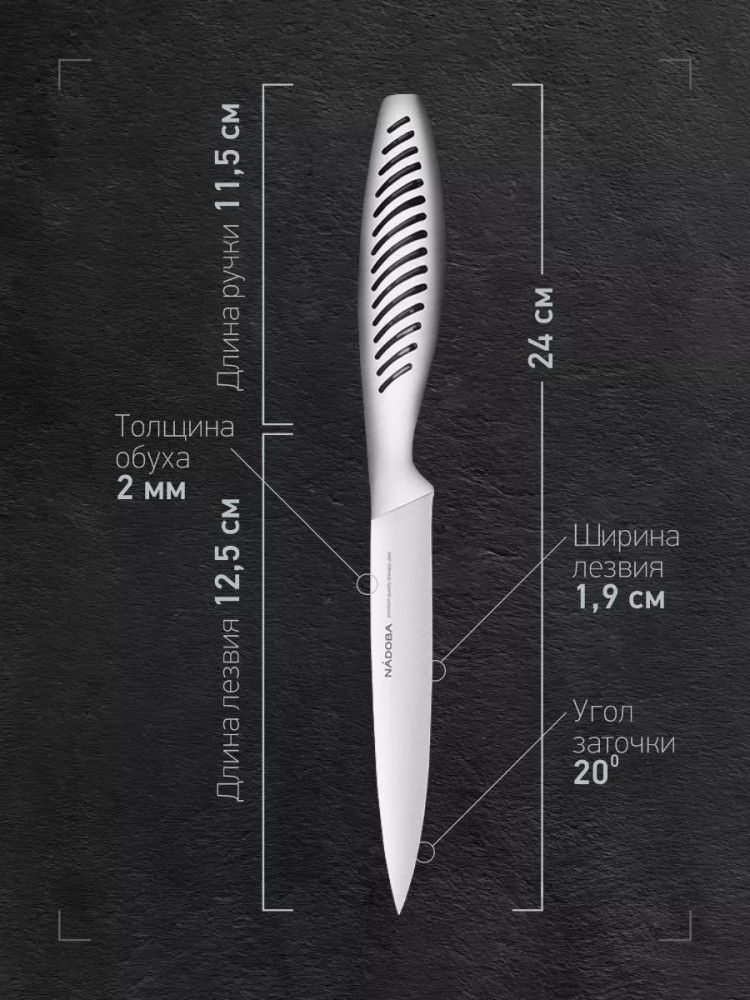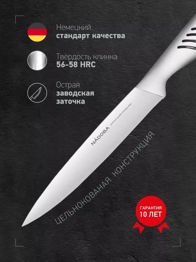 💳 Оплатить за товар можно при получении 🇰🇿 Есть бесплатная доставка по Казахстану 🎁 Копите бонусы с каждой покупки Серия: Vera Кухонные ножи серии Vera изготовлены из высококачественной нержавеющей стали премиум-класса, обладающей высокой твёрдостью по шкале Роквелла (56- 58 HRC), лезвия ножей остаются острыми очень долгое время. Ручки ножей выполнены из кованой нержавеющей стали с уникальным противоскользящим узором, препятствующим скольжению в руке в процессе работы с ножом. Гарантия на все кухонные ножи серии Vera 10 лет. |
