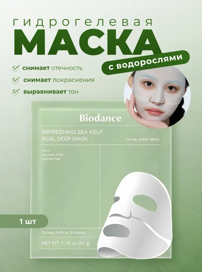 Biodance Успокаивающая гидрогелевая маска для лица против покраснений «Refreshing Sea Kelp Real Deep Mask»
